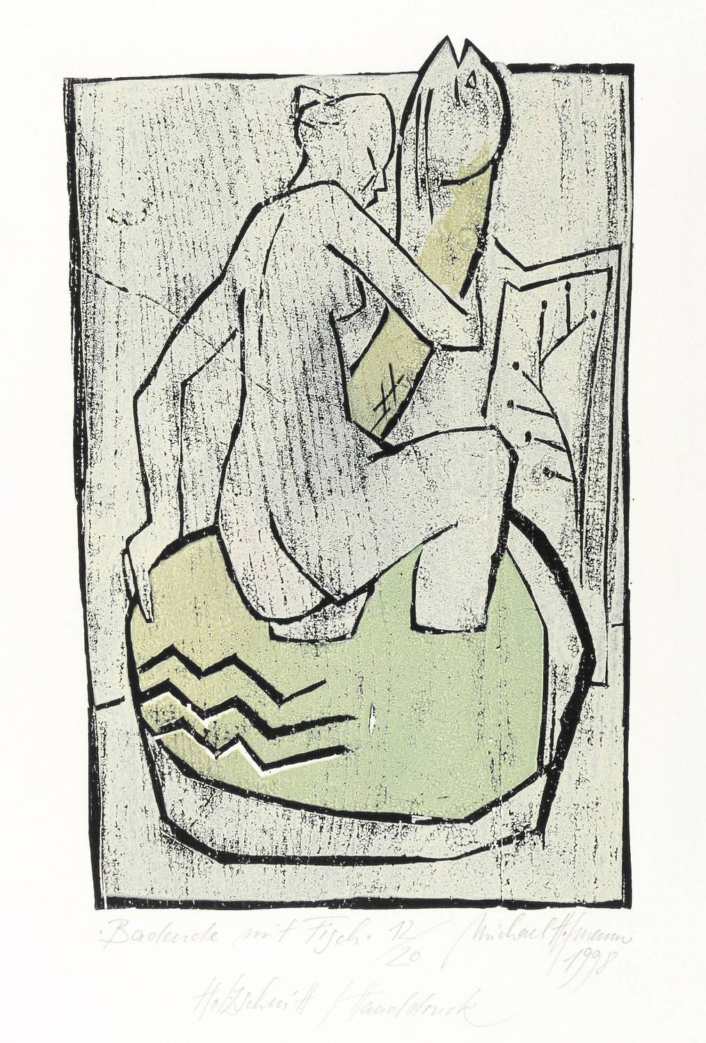 1998. Farbholzschnitt, auf Bütten. – Originale Künstlergrafik, von Michael Hofmann. – Auflage Exemplar Nr. 12/20. – 30 x 19,5 cm (Darstellung / Druckstock), 50 x 33 cm (Blatt).