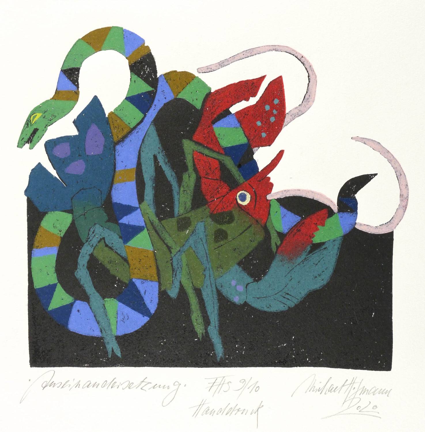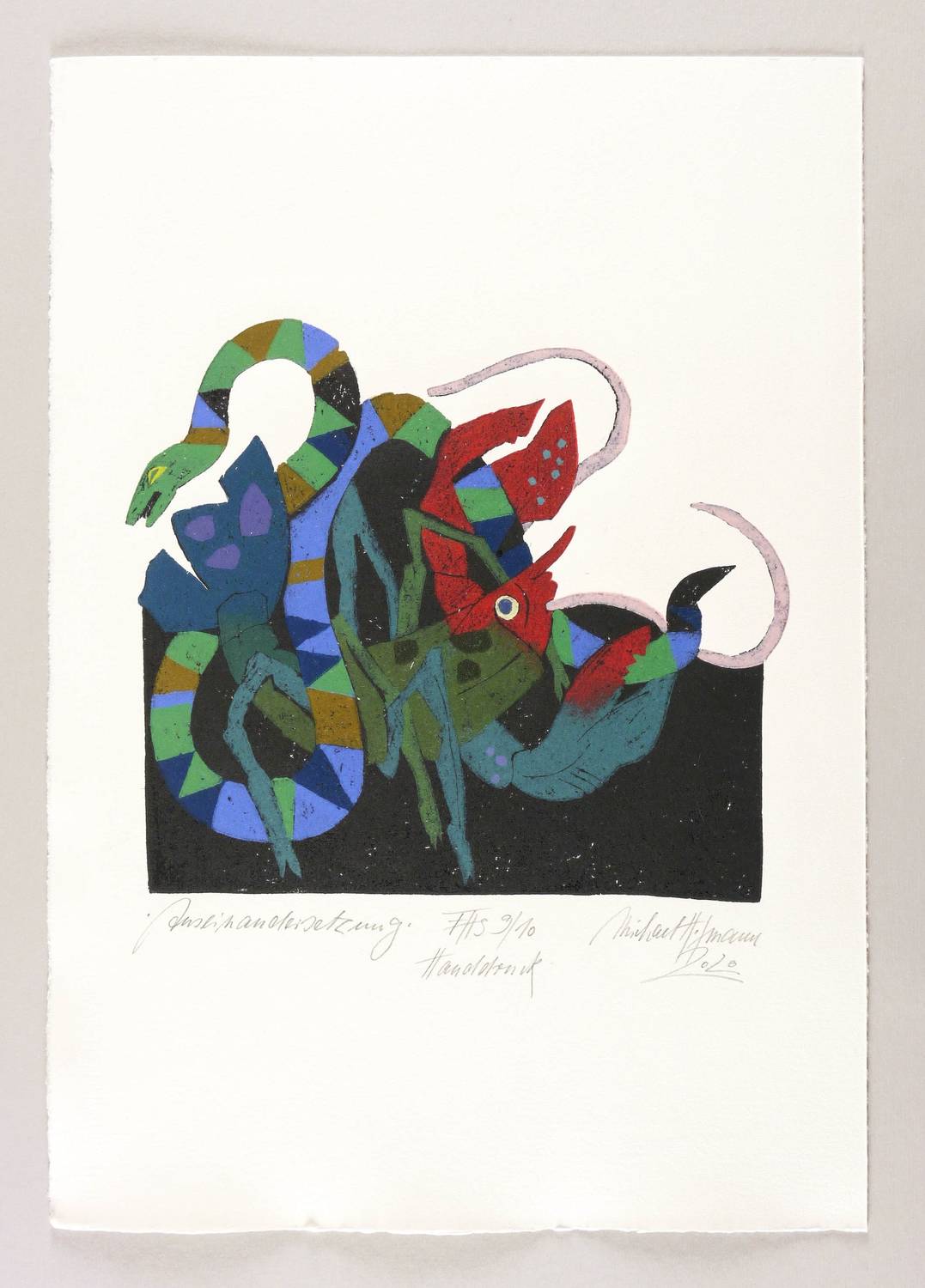 2020. Farbholzschnitt, auf Bütten. – Originale Künstlergrafik, von Michael Hofmann. – Auflage Exemplar Nr. 9/10. – 26 x 30 cm (Darstellung / Druckstock), 53,5 x 37,5 cm (Blatt).