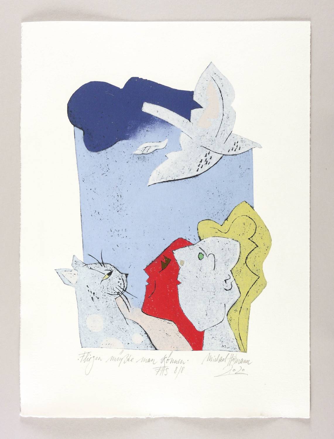 2020. Farbholzschnitt, auf Bütten. – Originale Künstlergrafik, von Michael Hofmann. – Auflage Exemplar Nr. 8/8. – 39,1 x 29,2 cm (Darstellung / Druckstock), 53 x 39 cm (Blatt).