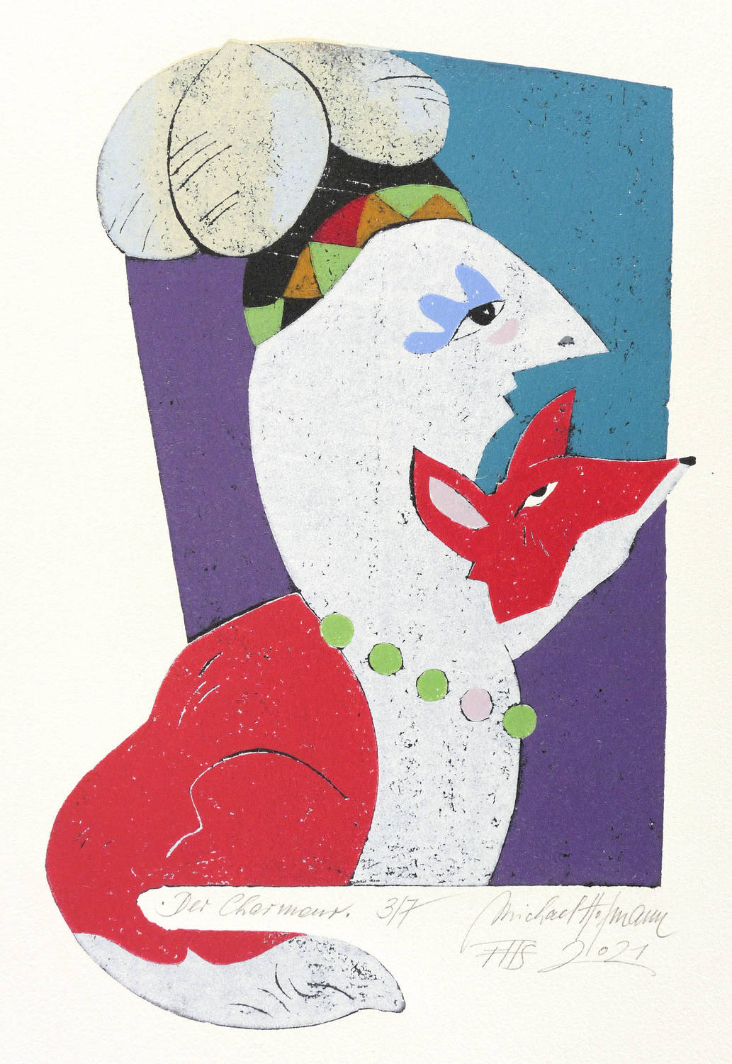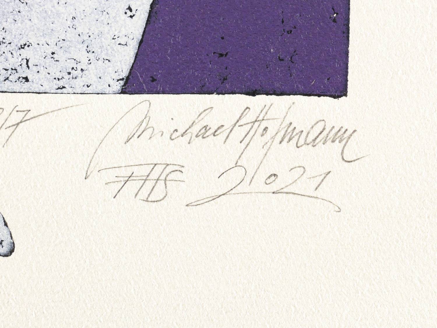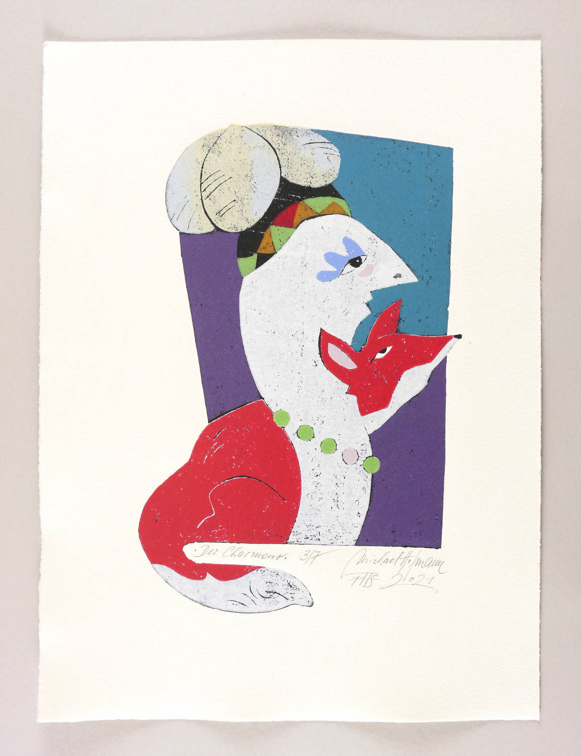 2021. Farbholzschnitt, auf Bütten. – Originale Künstlergrafik, von Michael Hofmann. – Auflage Exemplar Nr. 3/7. – 38,3 x 25,3 cm (Darstellung / Druckstock), 53 x 39 cm (Blatt).