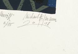 2018. Farbholzschnitt, auf Bütten. – Originale Künstlergrafik, von Michael Hofmann. – Auflage Exemplar Nr. 6/15. – 38,7 x 25,6 cm (Darstellung / Druckstock), 68 x 37,5 cm (Blatt).