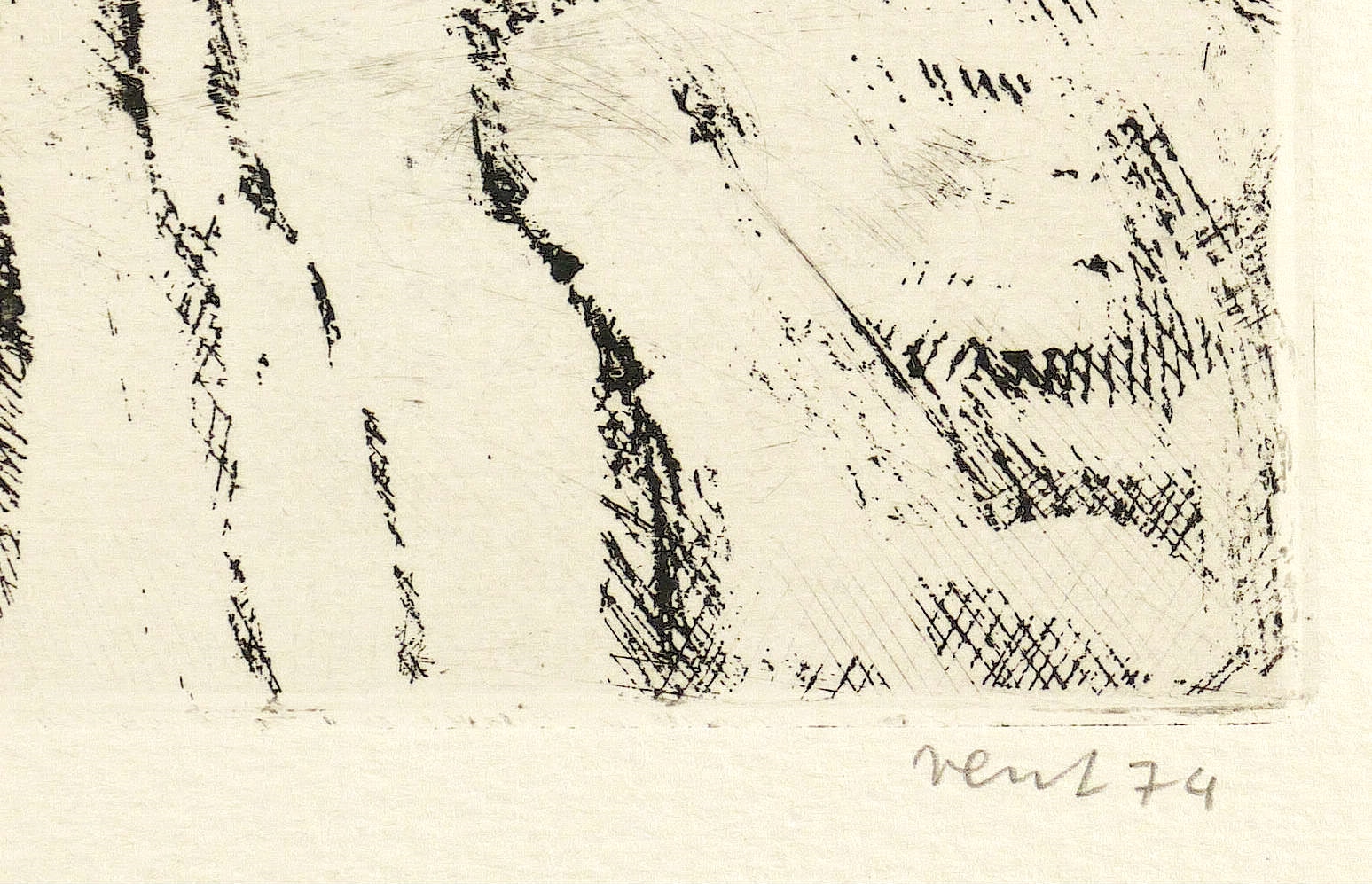 1974. Radierung / Reservage, in Schwarz, auf Weißenborn-Bütten. – Originale Künstlergrafik, von Hans Vent. – Auflage 100 Exemplare. – 24,3 x 32,2 cm (Darstellung / Platte), 40 x 50 cm (Blatt).