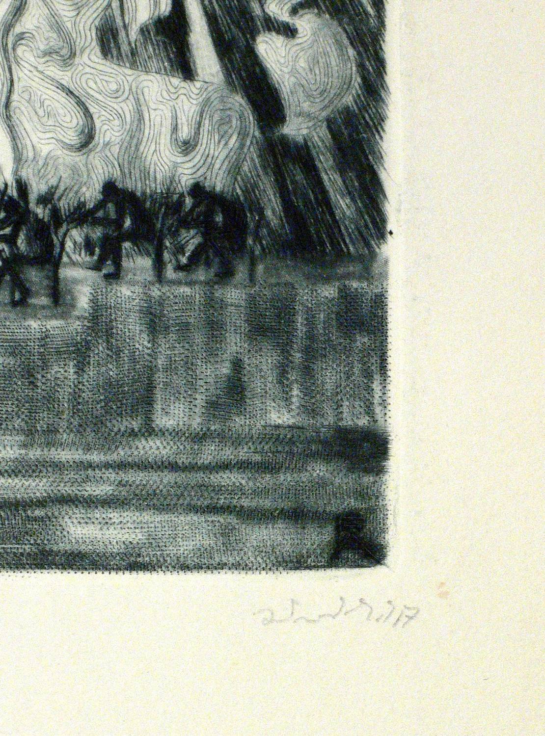 1917. Radierung / Strichätzung & Roulette, in Blau, auf gelblichem Kupferdruckkarton. – Originale Künstlergrafik, von Alexander Friedrich. – Probedruck. – 29,5 x 23,8 cm (Darstellung / Platte), 40 x 30 cm (Blatt).
