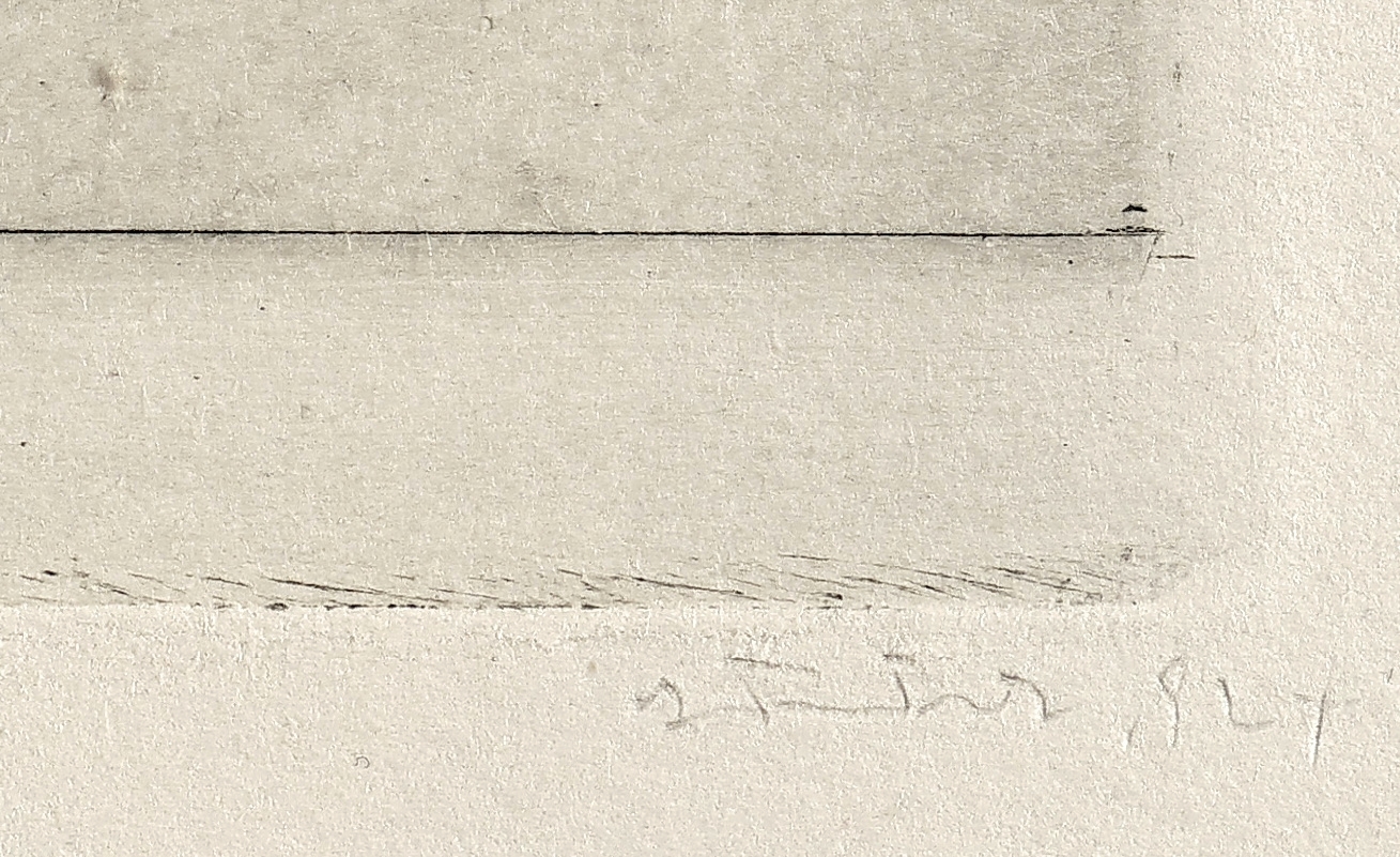 1924. Radierung / Strichätzung, in Schwarz, auf Kupferdruckkarton. – Originale Künstlergrafik, von Alexander Friedrich. – Auflage Exemplar Nr. 31/150. – 9,0 x 34,6 cm (Darstellung / Platte), 14,5 x 46,0 cm (Blatt).