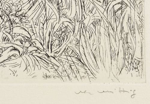 Außerhalb der Platte rechts unten in Bleistift signiert. Am Blattrand unten links Trockenstempel ″S″. – Tadelloses Exemplar.