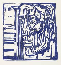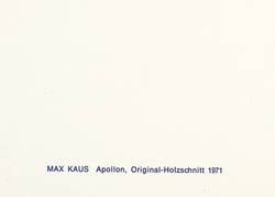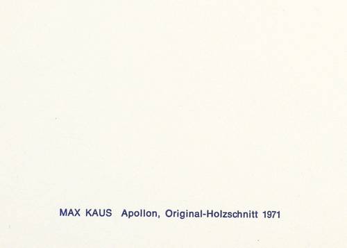 1971. Holzschnitt, in Dunkelblau, auf weißem Papier. – Originale Künstlergrafik, von Max Kaus. – 16,0 x 15,3 cm (Darstellung), 30 x 20,5 cm (Blatt).