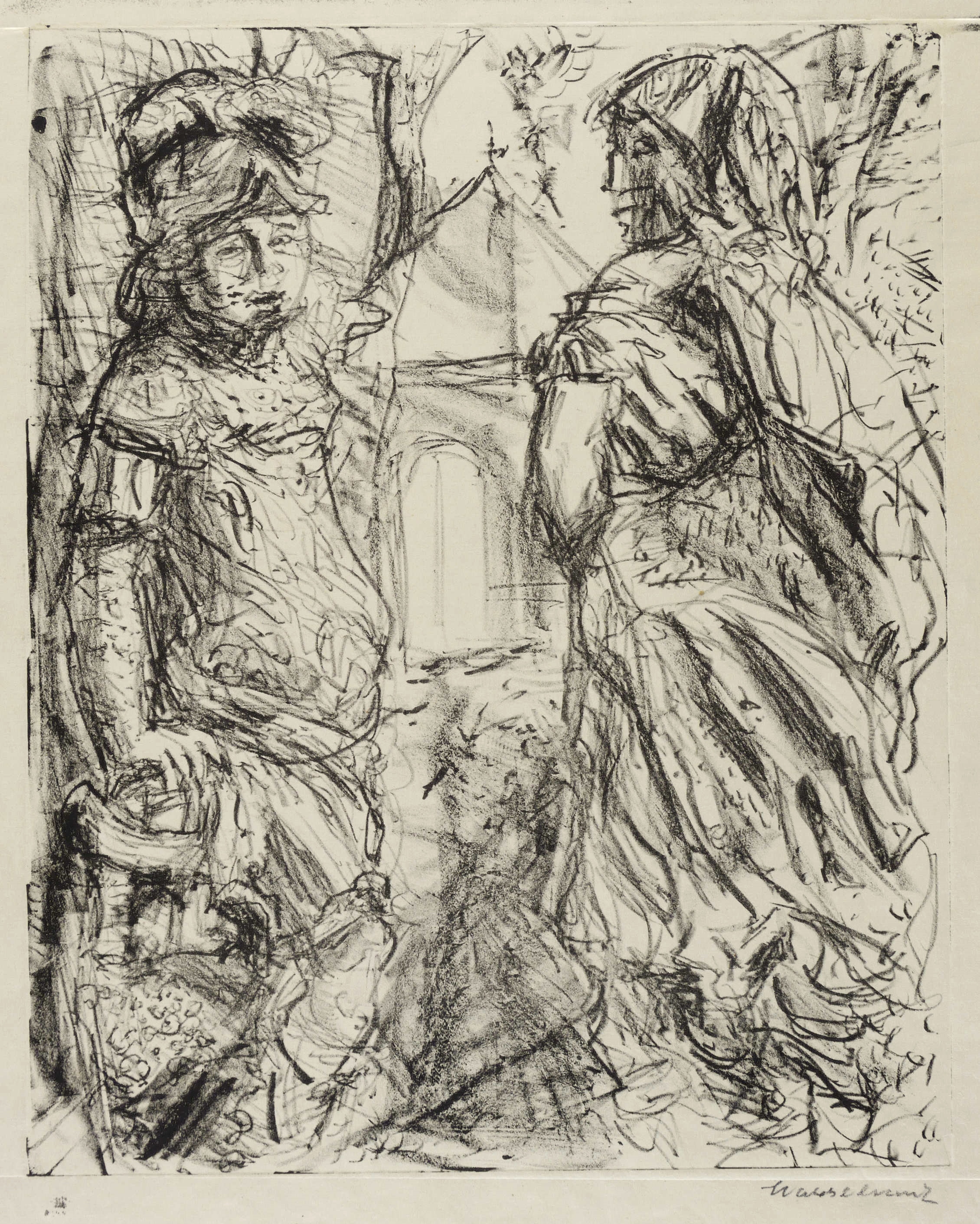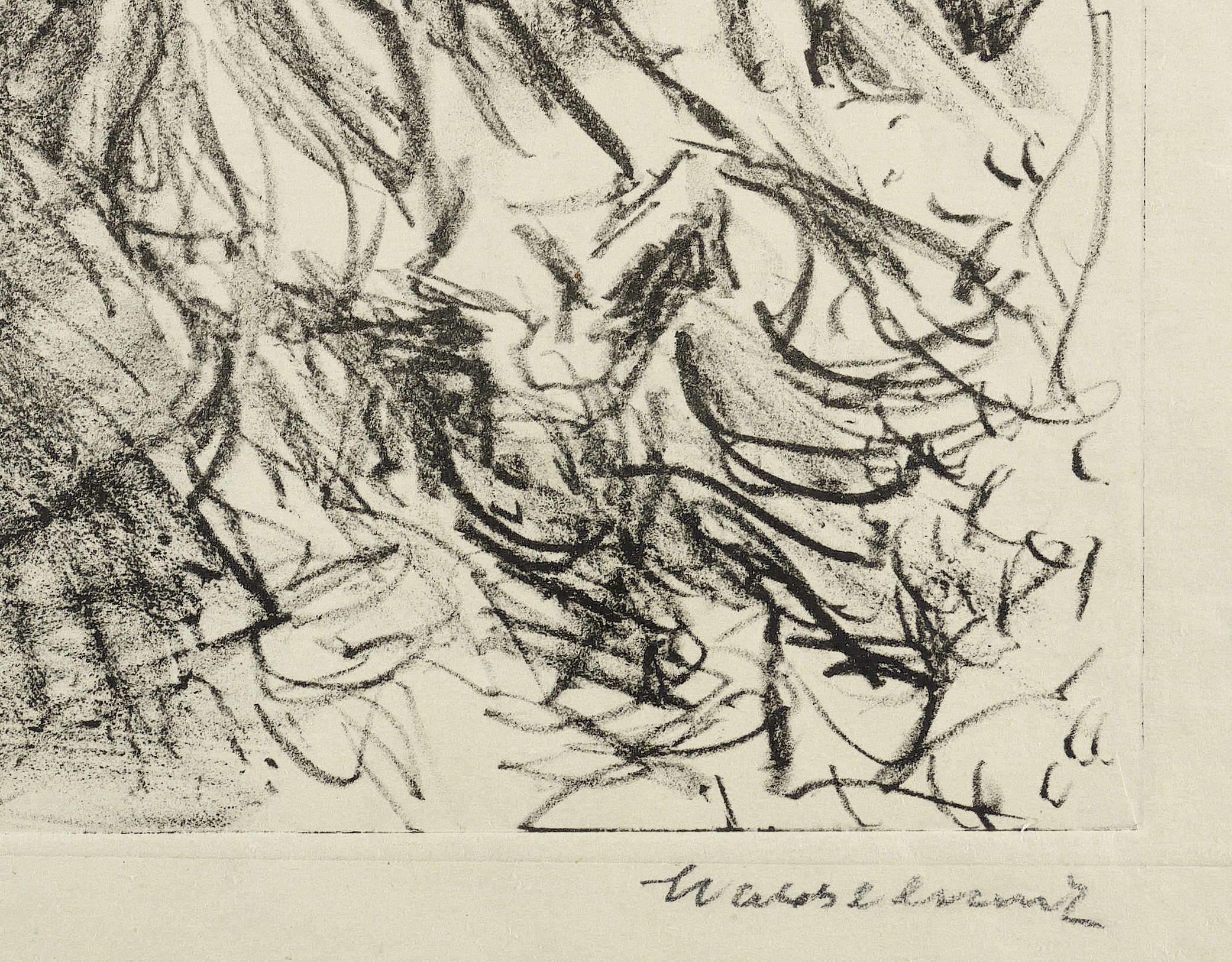 1955. Lithografie / Kreidelithografie, auf Zink, partiell geschabt, in Schwarz, auf hellem Bütten. – Originale Künstlergrafik, von Ernst Hassebrauk. – 29,8 x 23,9 cm (Darstellung), 33 x 27 cm (Blatt).