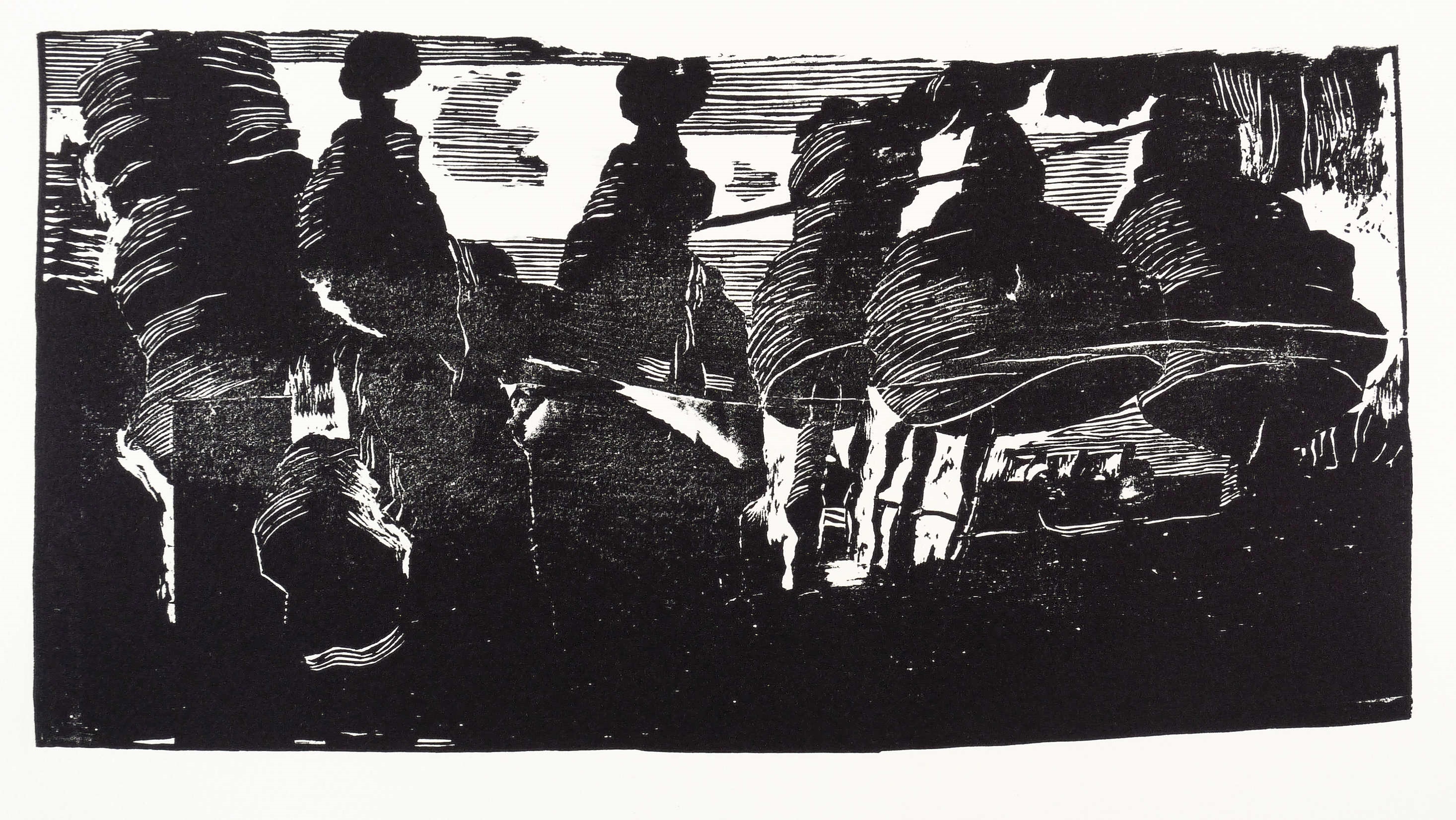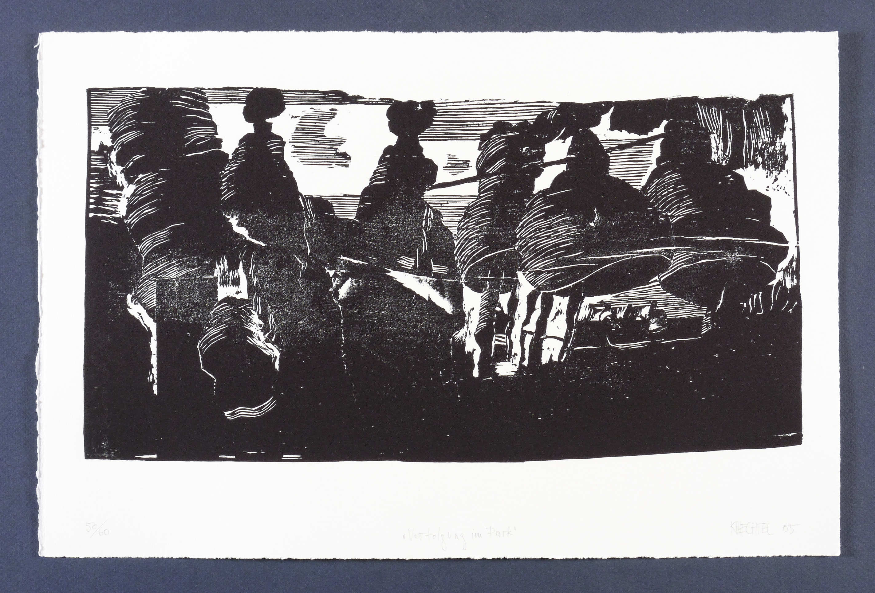 2005. Holzschnitt, in Schwarz, auf weißem Somerset-Bütten. – Originale Künstlergrafik, von Stefan Knechtel. – Auflage Exemplar Nr. 50/60. – 18,7 x 35,6 cm (Darstellung), 26 x 40 cm (Blatt).