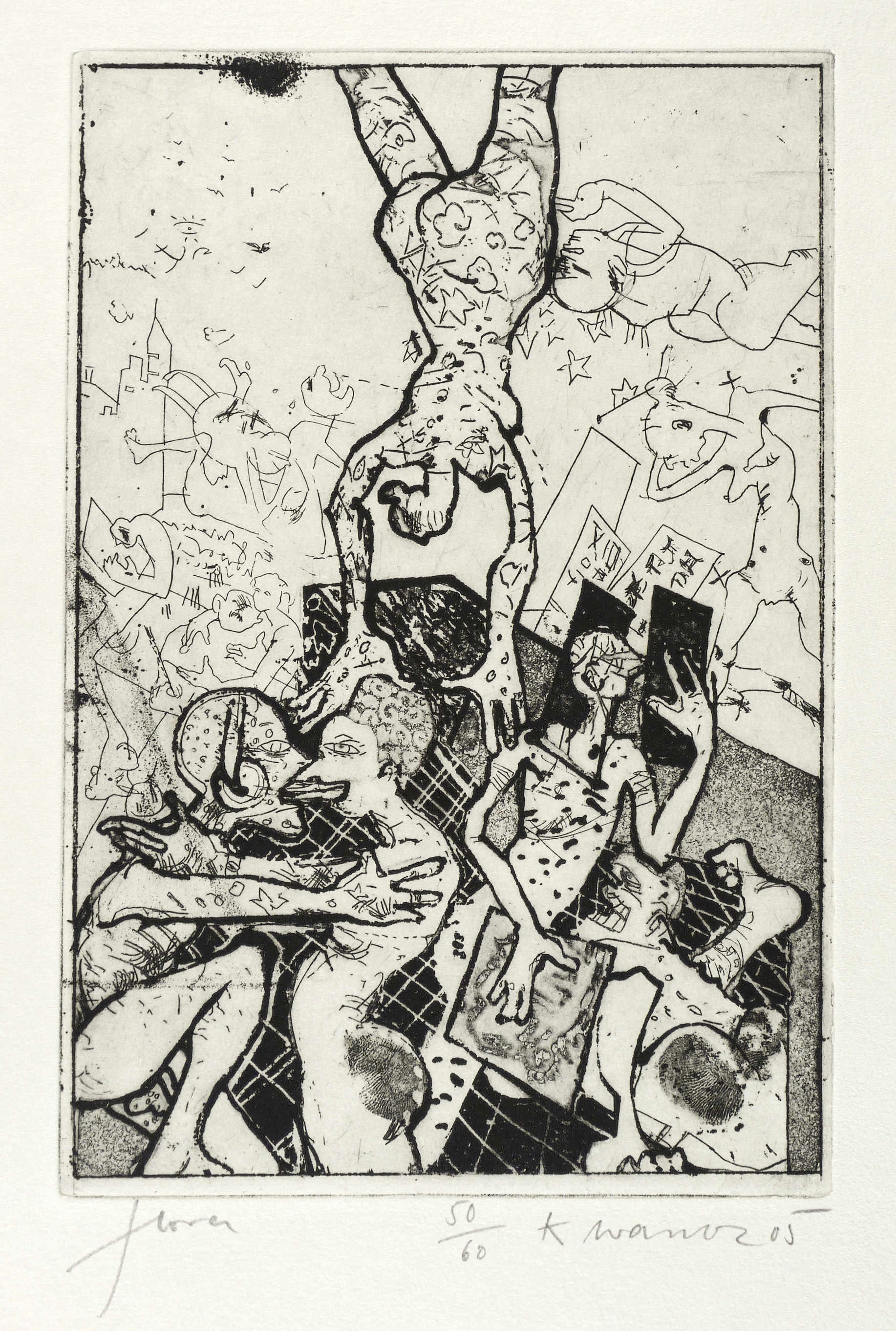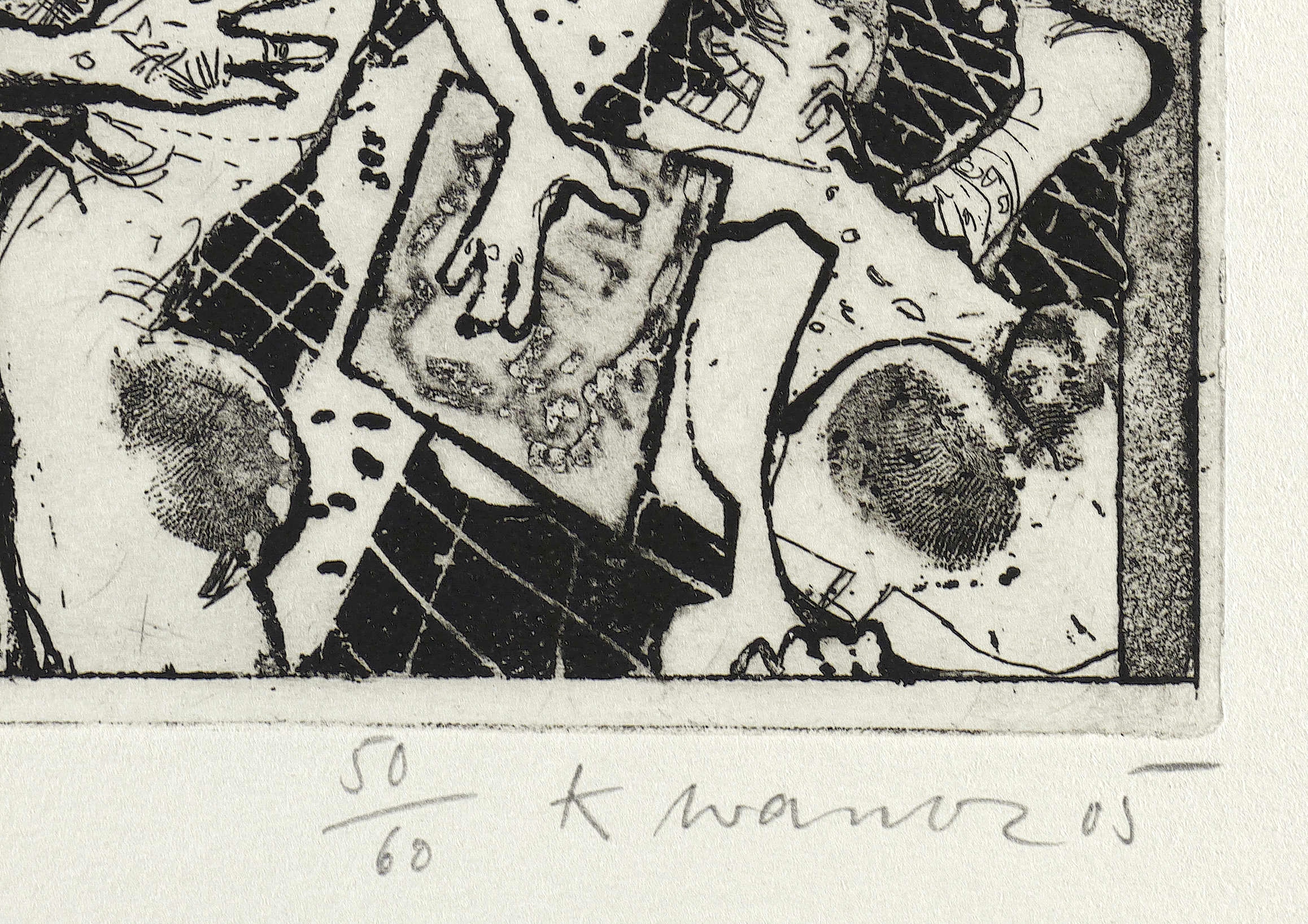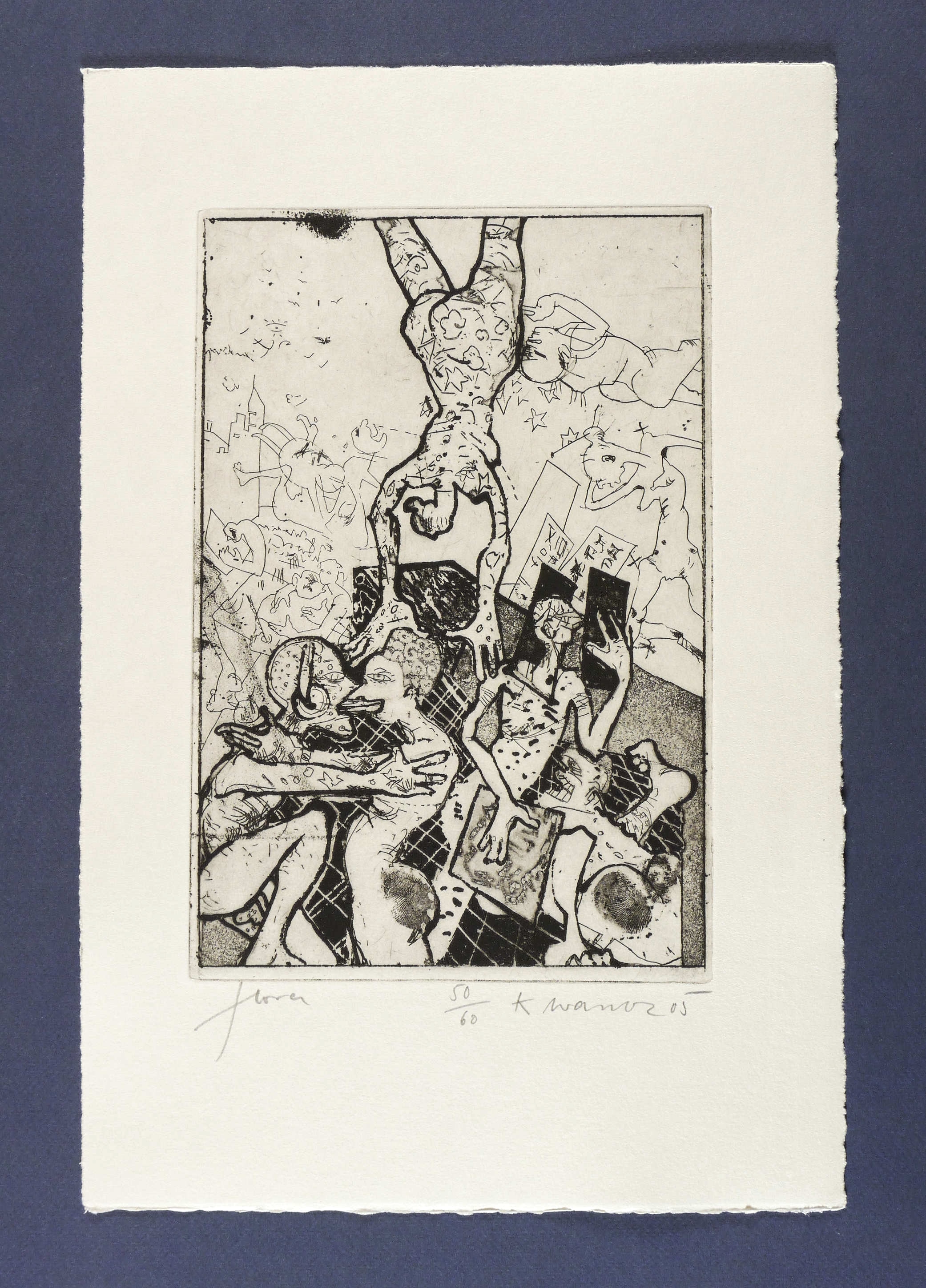 2005. Radierung / Strichätzung, Reservage & Aquatinta, in Schwarz, auf hellgrauem Hahnemühle-Bütten. – Originale Künstlergrafik, von Klaus Waschk. – Auflage Exemplar Nr. 50/60. – 26,5 x 17,8 cm (Darstellung / Platte), 40 x 26 cm (Blatt).