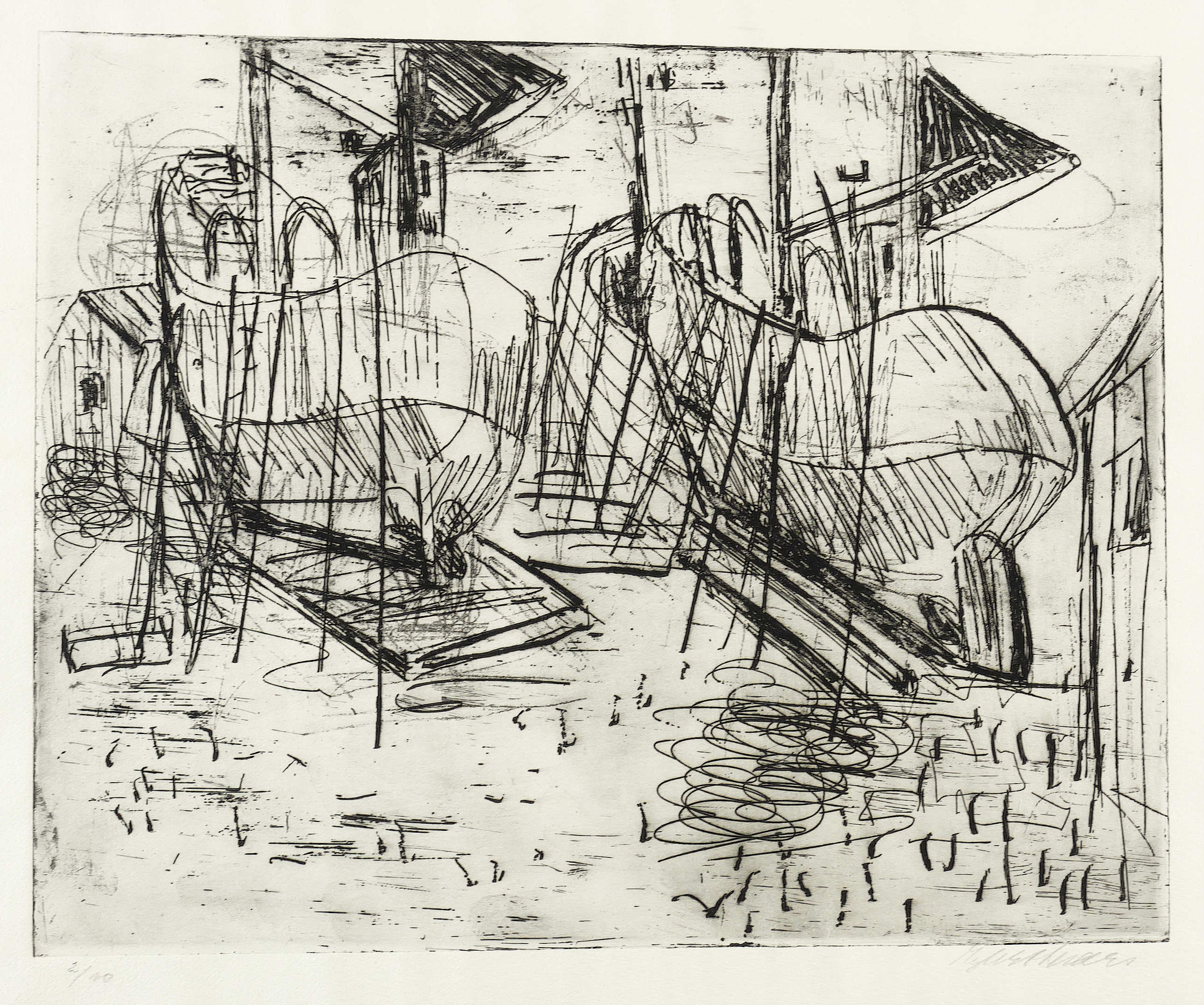 1970-1980. Radierung / Reservage, in Schwarz, mit Plattenton, auf Büttenkarton. – Originale Künstlergrafik, von Eylert Spars. – Auflage Exemplar Nr. 2/10. – 32,3 x 40,3 cm (Darstellung / Platte), 39 x 52 cm (Blatt).