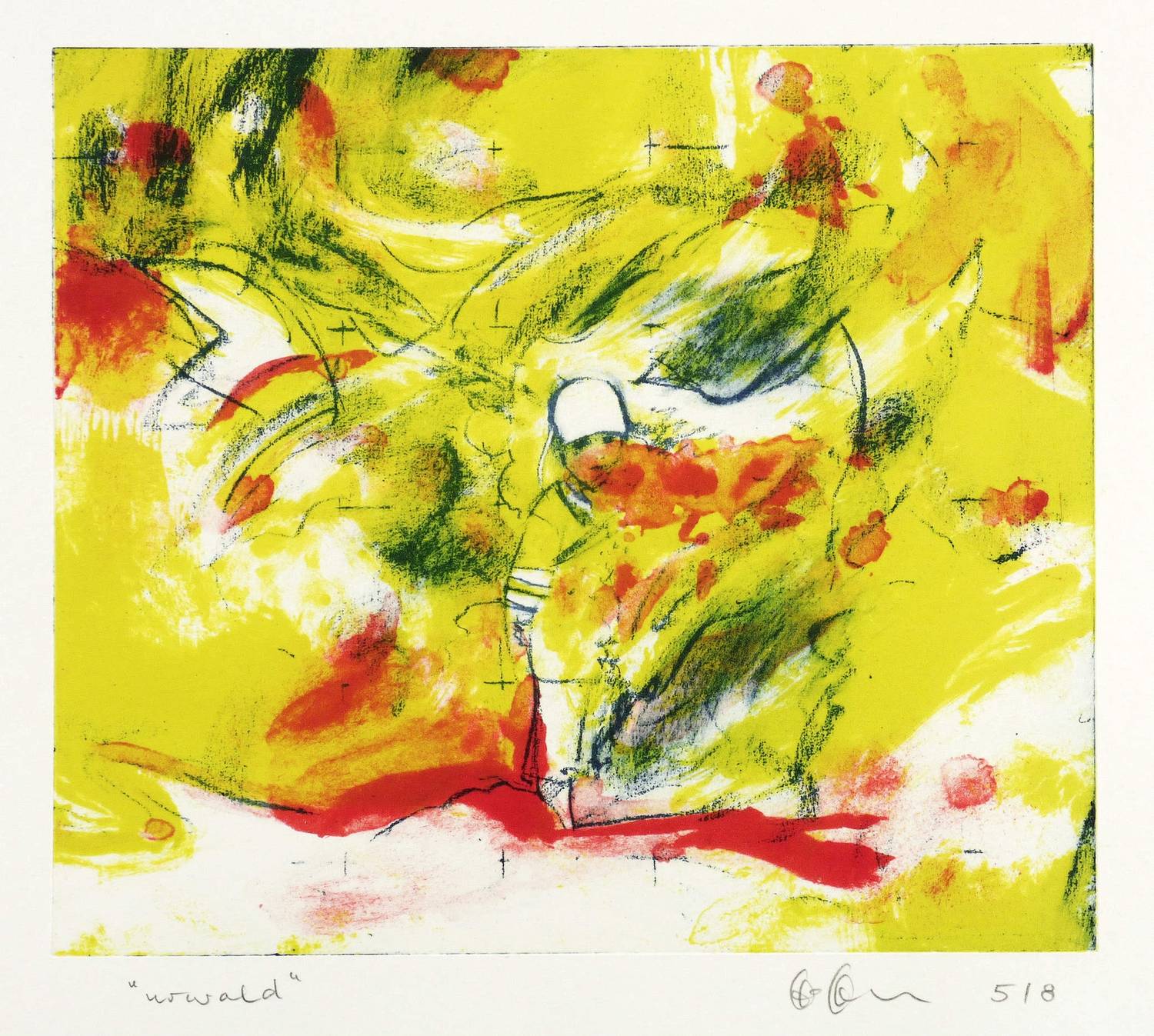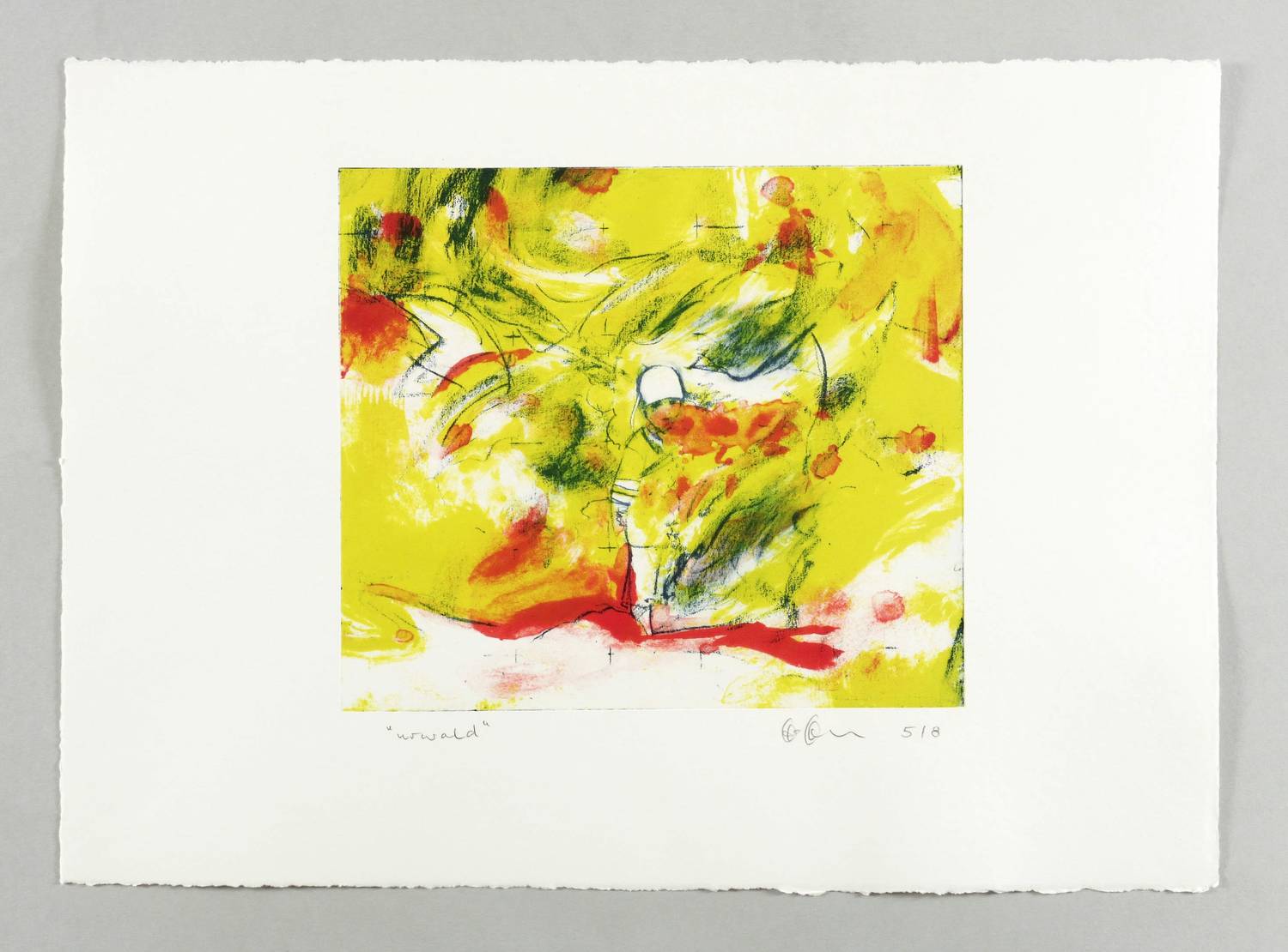 2012. Algrafie, in drei Farben, auf Büttenpapier. – Originale Künstlergrafik, von Frank Hoffmann. – Auflage Exemplar Nr. 5/8. – 18,0 x 20,5 cm (Darstellung), 27,5 x 38,0 cm (Blatt).