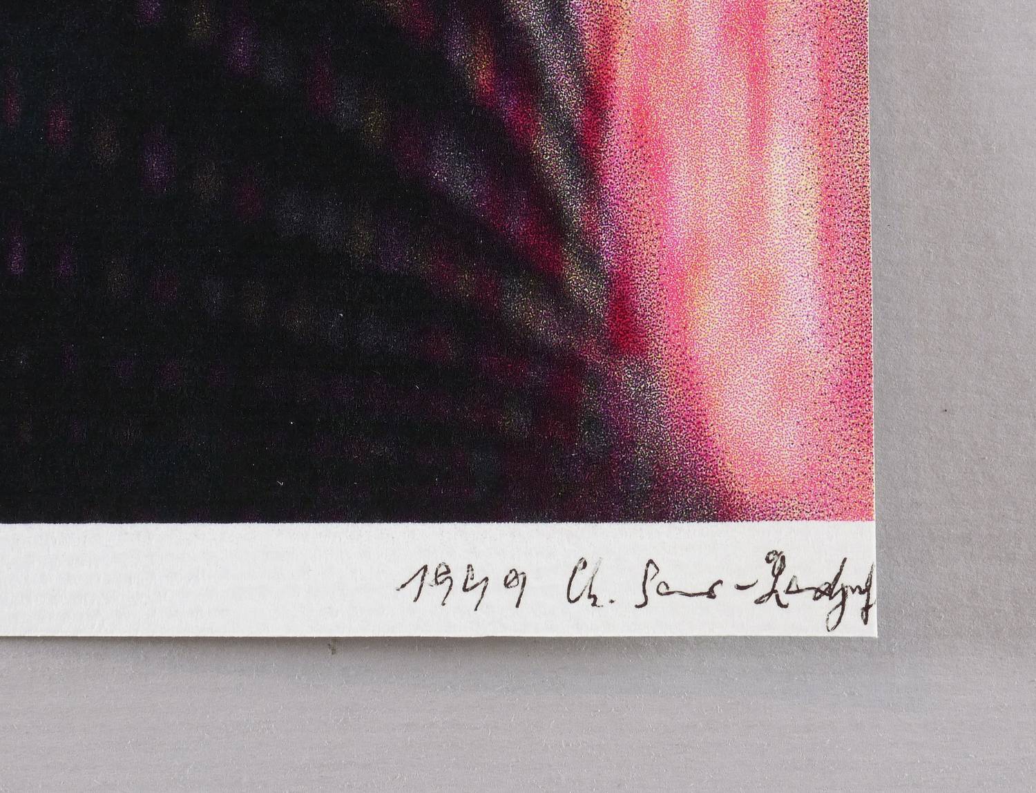 1999. Computergrafik / Farbtintenstrahldruck, in Magenta & Schwarz, auf weißem Velinkarton. – Originale Künstlergrafik, von Charlotte Sommer-Landgraf. – 24 x 16 cm (Blatt), 23,0 x 16,0 cm (Darstellung / Druckbild).