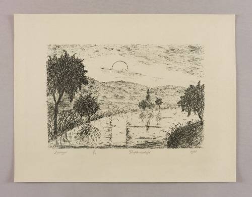 Links unten in Bleistift signiert: ″Lewinger″. Rechts datiert: ″1980″. Mittig Auflagenbezeichnung und Titel: ″1/58 / Flußlandschaft″. – Sehr guter Zustand.