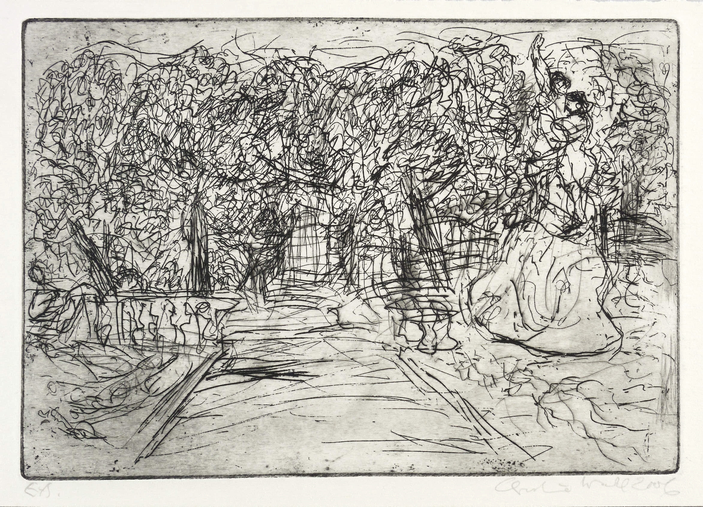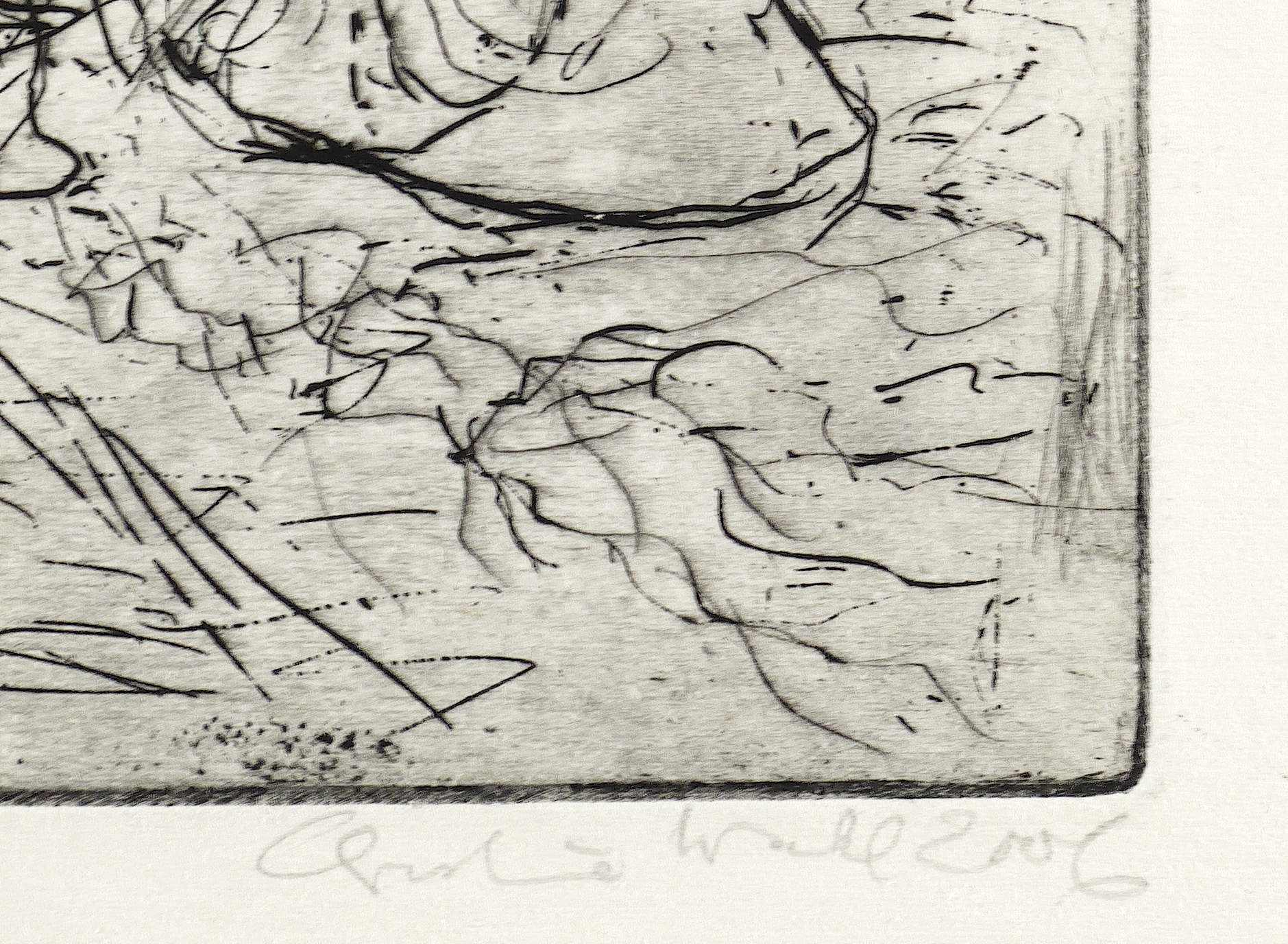 2006. Radierung / Strichätzung & Kaltnadel, mit Plattenton, in Schwarz, auf hellem Velinkarton. – Originale Künstlergrafik, von Christine Wahl. – Künstlerexemplar (e.a.). – 14,0 x 20,0 cm (Darstellung / Platte), 15,5 x 29,5 cm (Blatt).