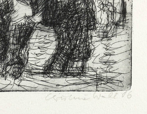 2006. Radierung / Strichätzung, in Schwarz, mit Plattenton, auf hellem Velinkarton. – Originale Künstlergrafik, von Christine Wahl. – Auflage Exemplar Nr. 1/2. – 11,7 x 16,9 cm (Darstellung / Platte), 26 x 35 cm (Blatt).