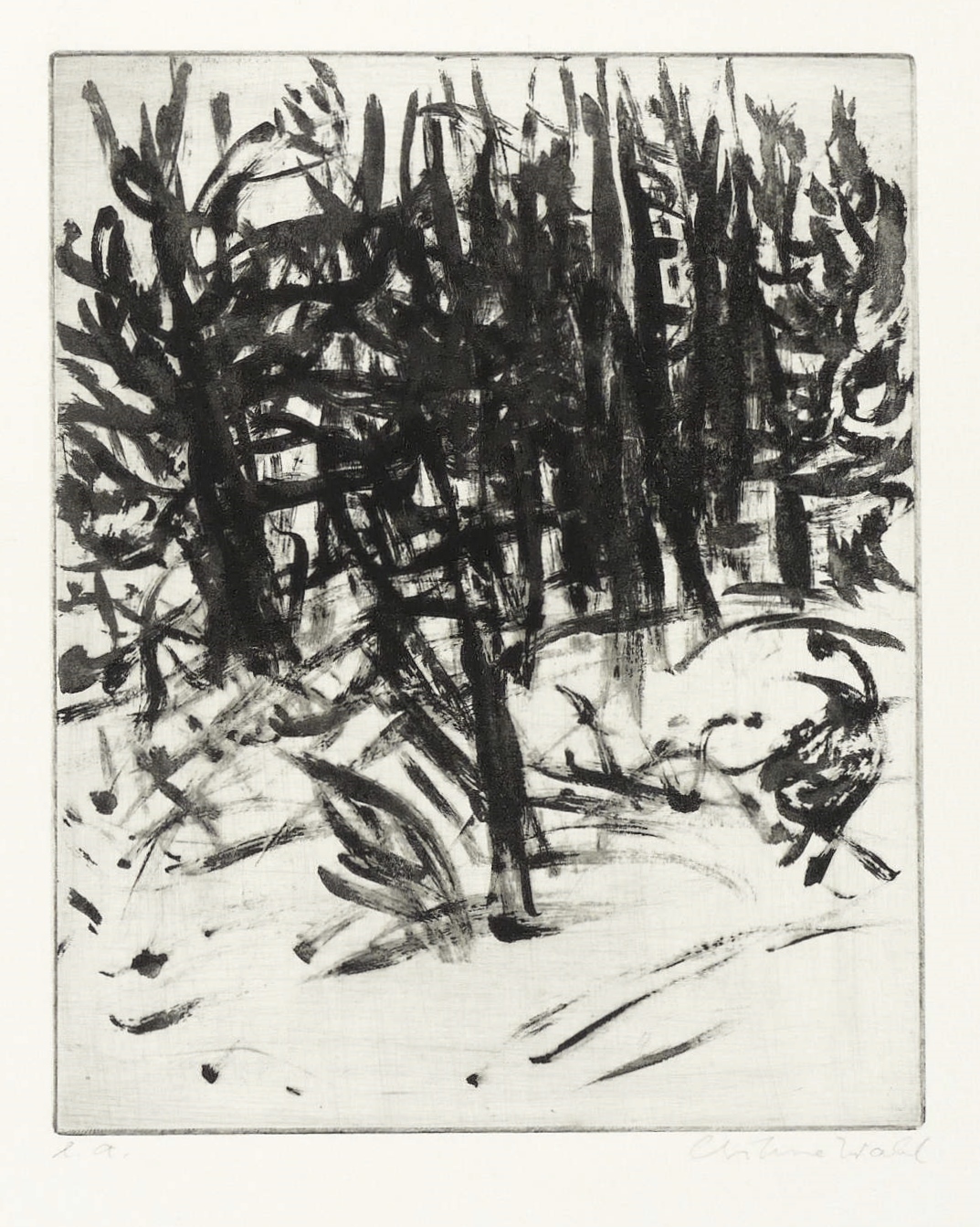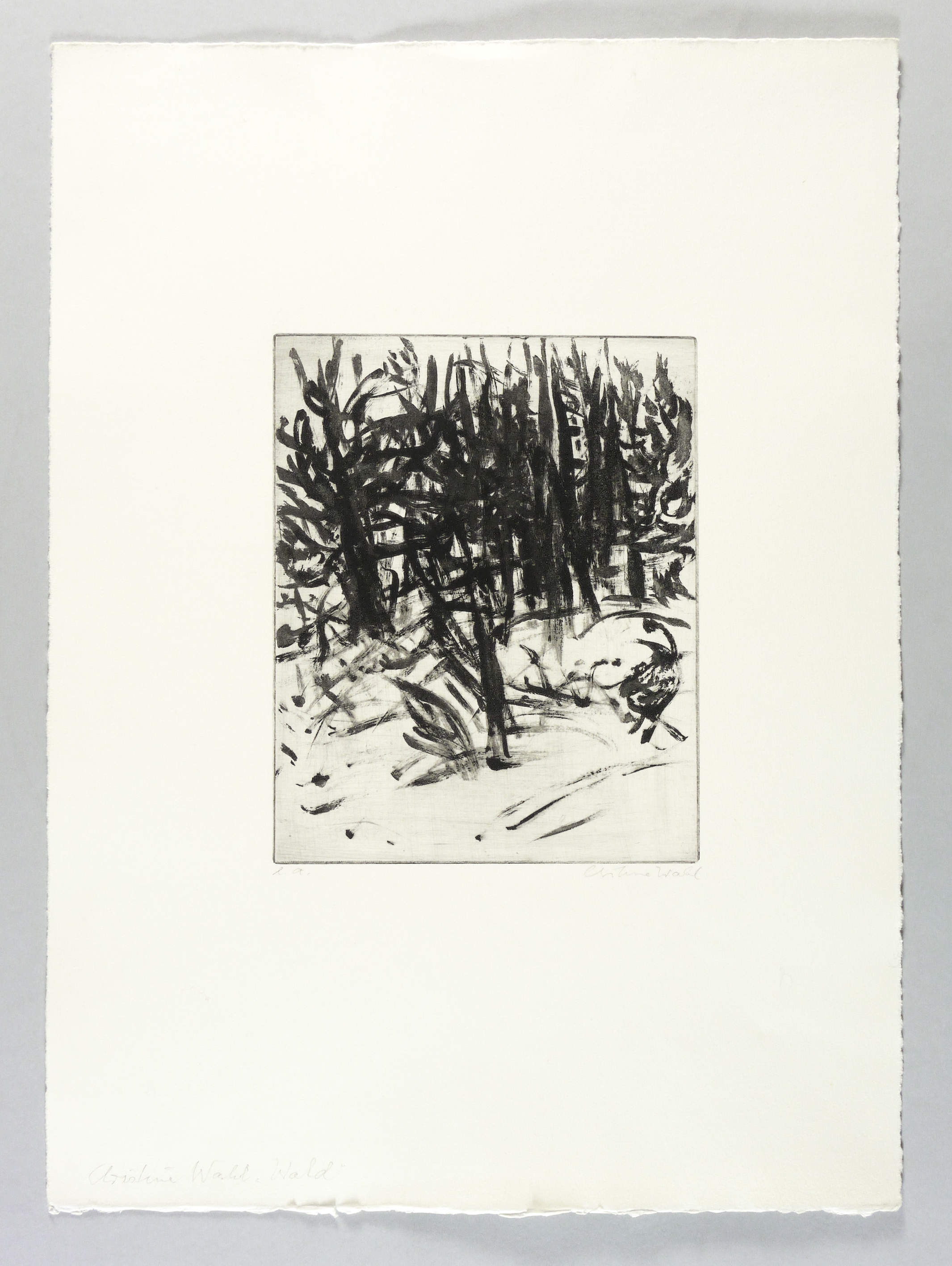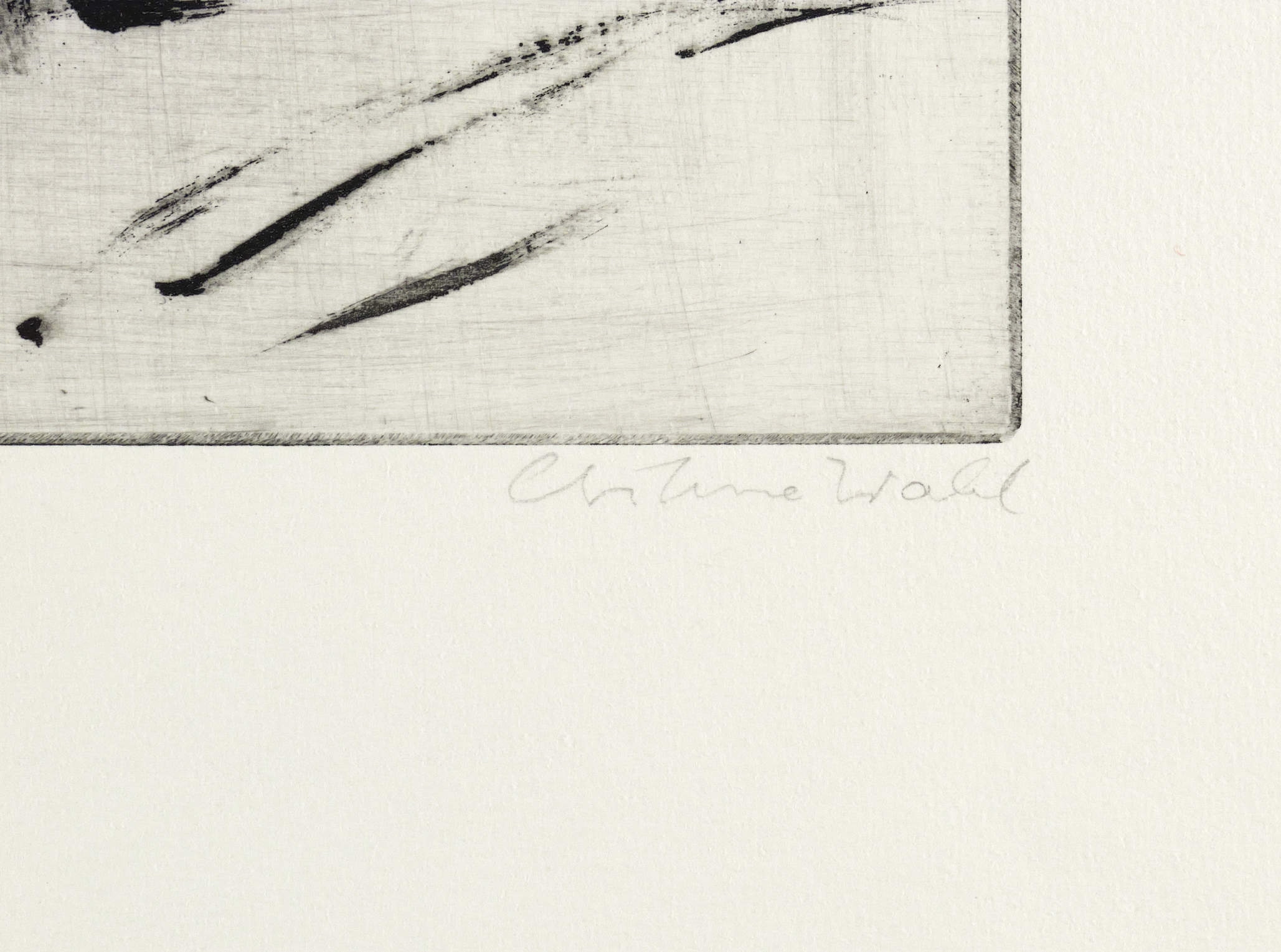 2000-2010. Radierung / Reservage, in Schwarz, auf schwerem hellchamois Velin. – Originale Künstlergrafik, von Christine Wahl. – Künstlerexemplar (e.a.). – 24,7 x 19,7 cm (Darstellung / Platte), 54 x 40 cm (Blatt).
