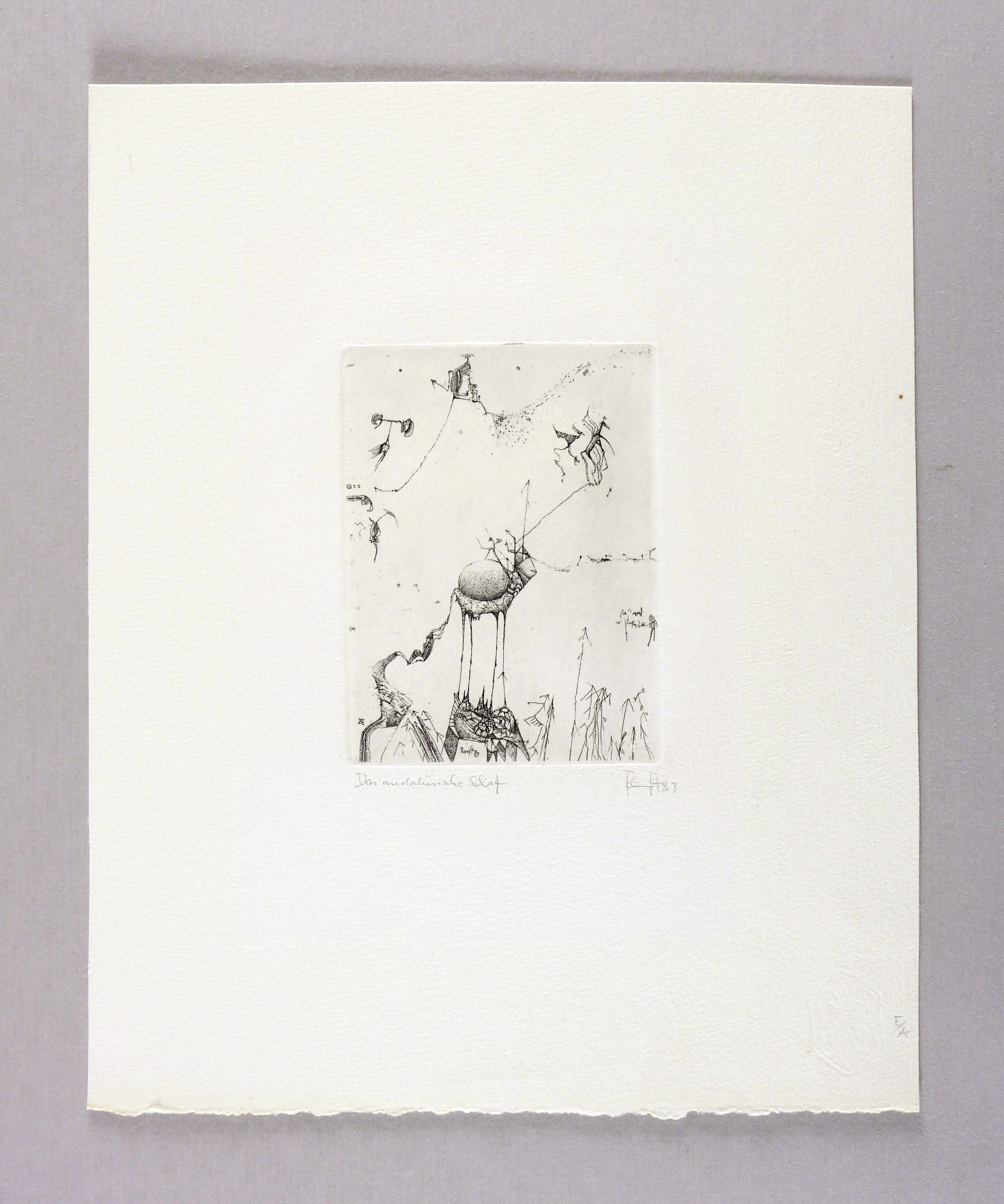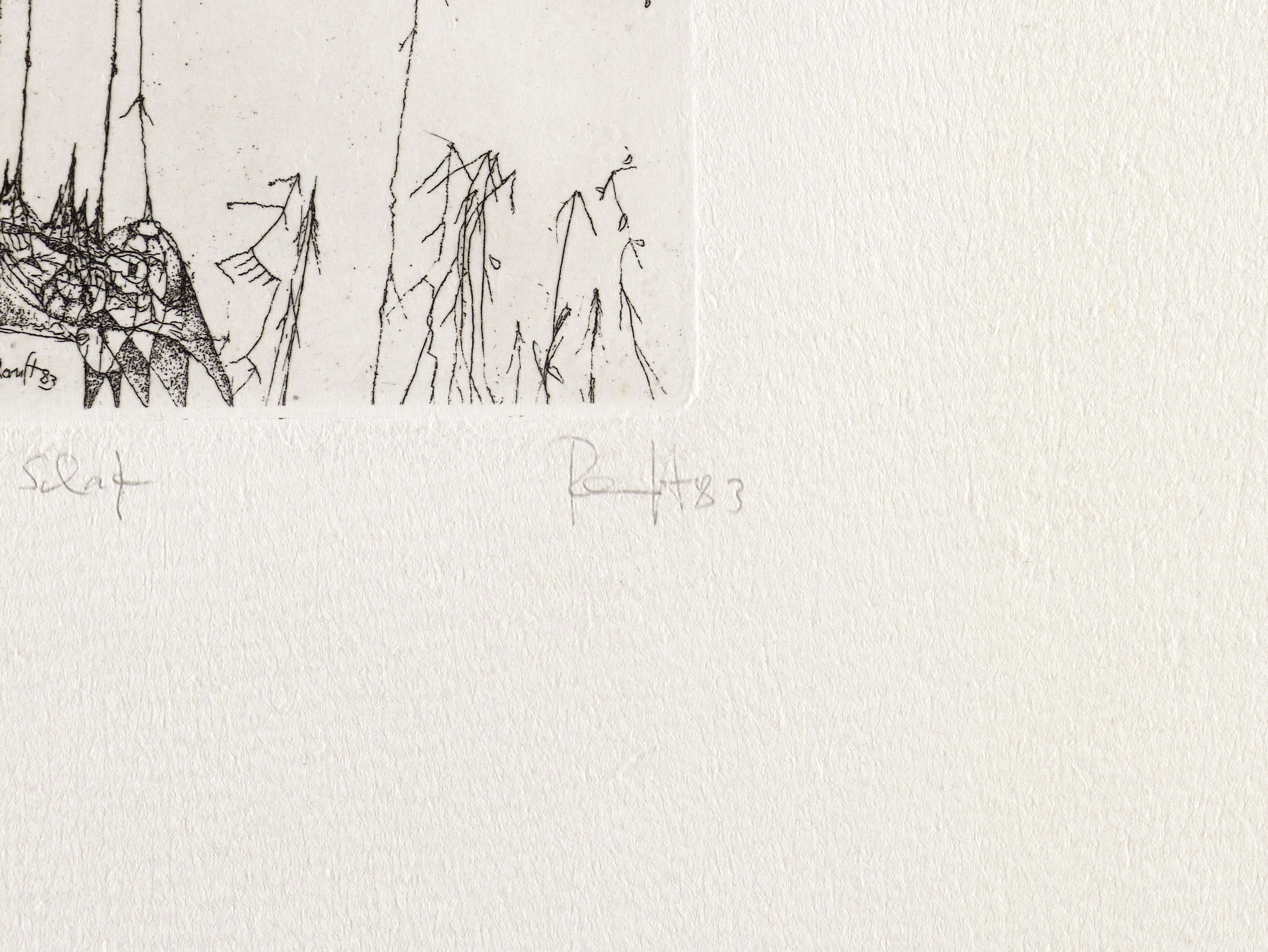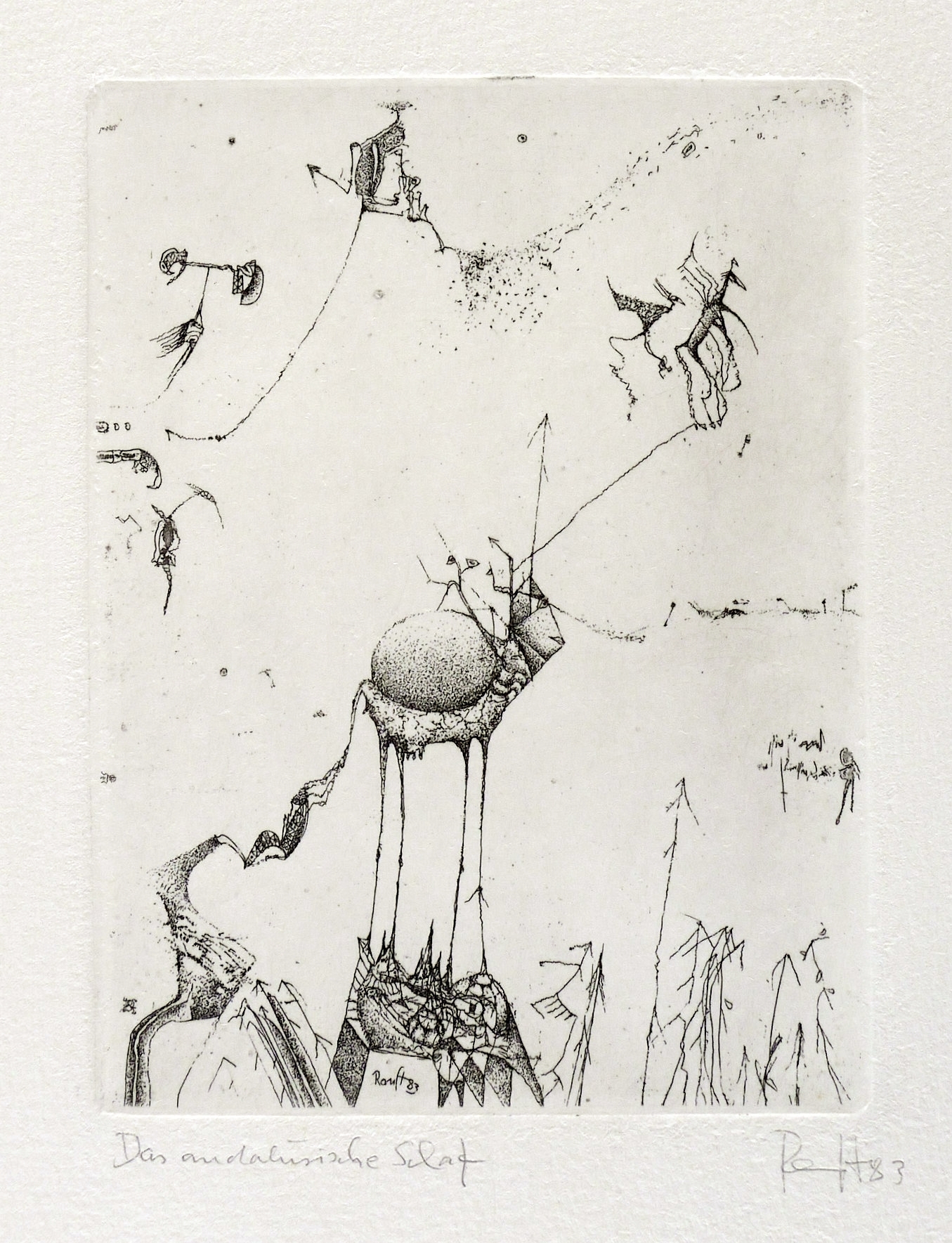 1983. Radierung / Strichätzung, in Schwarz, auf hellchamois Velin. – Originale Künstlergrafik, von Thomas Ranft. – Künstlerexemplar (e.a.). – 10,1 x 7,5 cm (Darstellung / Platte), 25 x 20 cm (Blatt).