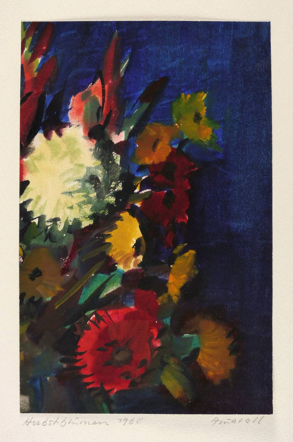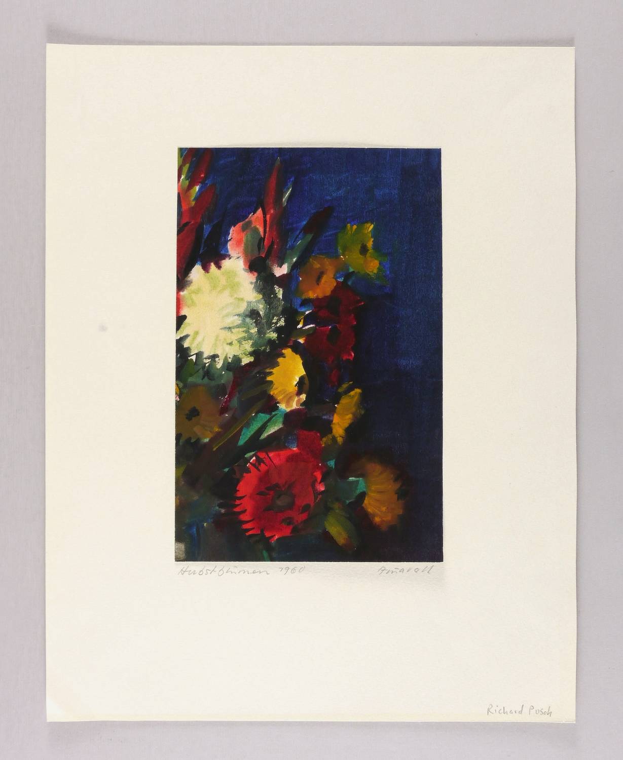 Auf dem Trägerkarton in Bleistift bezeichnet: ″Herbstblumen 1960 / Aquarell // Richard Pusch″. – Original vom Künstler auf Trägerkarton montiert. Sehr guter Zustand.