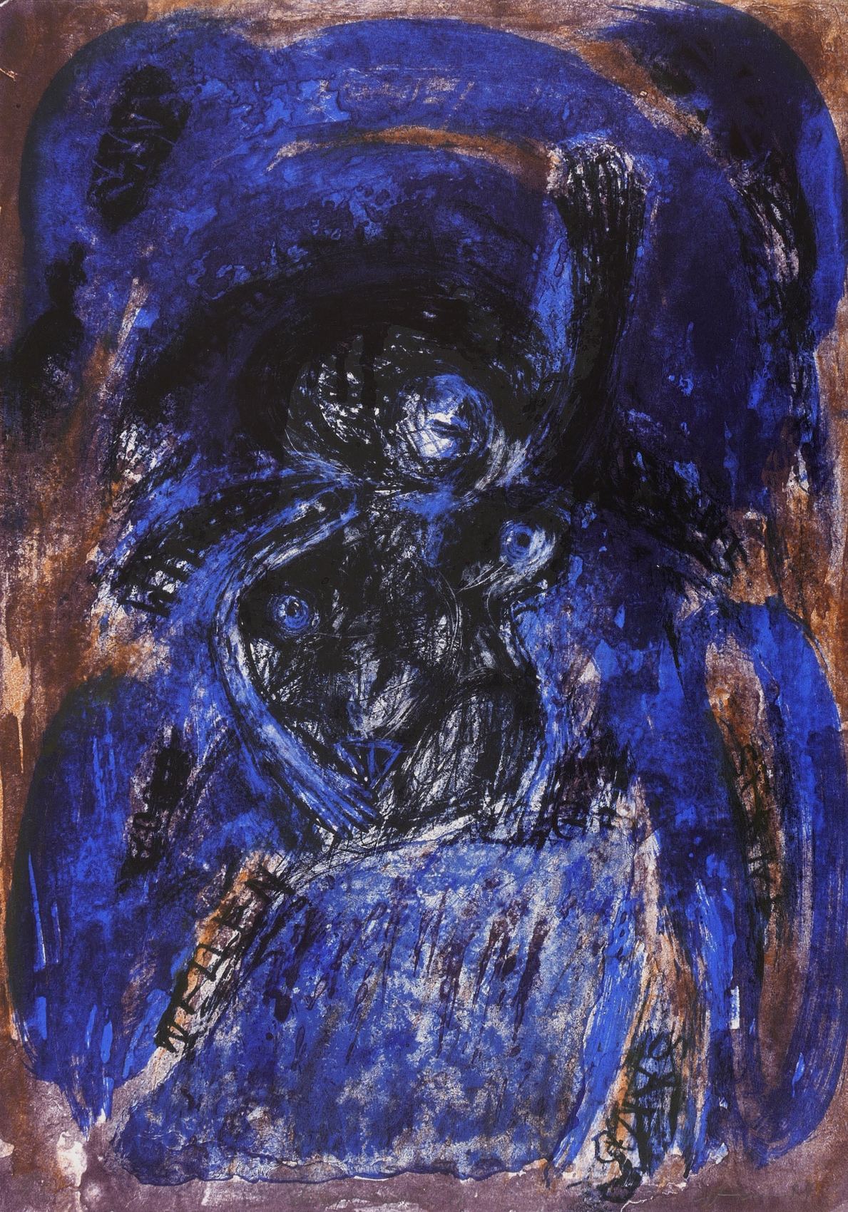 1984. Farblithografie / Feder- & Pinsellithografie, in 4 Farben, auf kräftigem glattem hellchamois Velinkarton. – Originale Künstlergrafik, von Wolfgang Henne. – Auflage Exemplar Nr. 5/7. – 60,0 x 42,0 cm (Darstellung / Blatt).