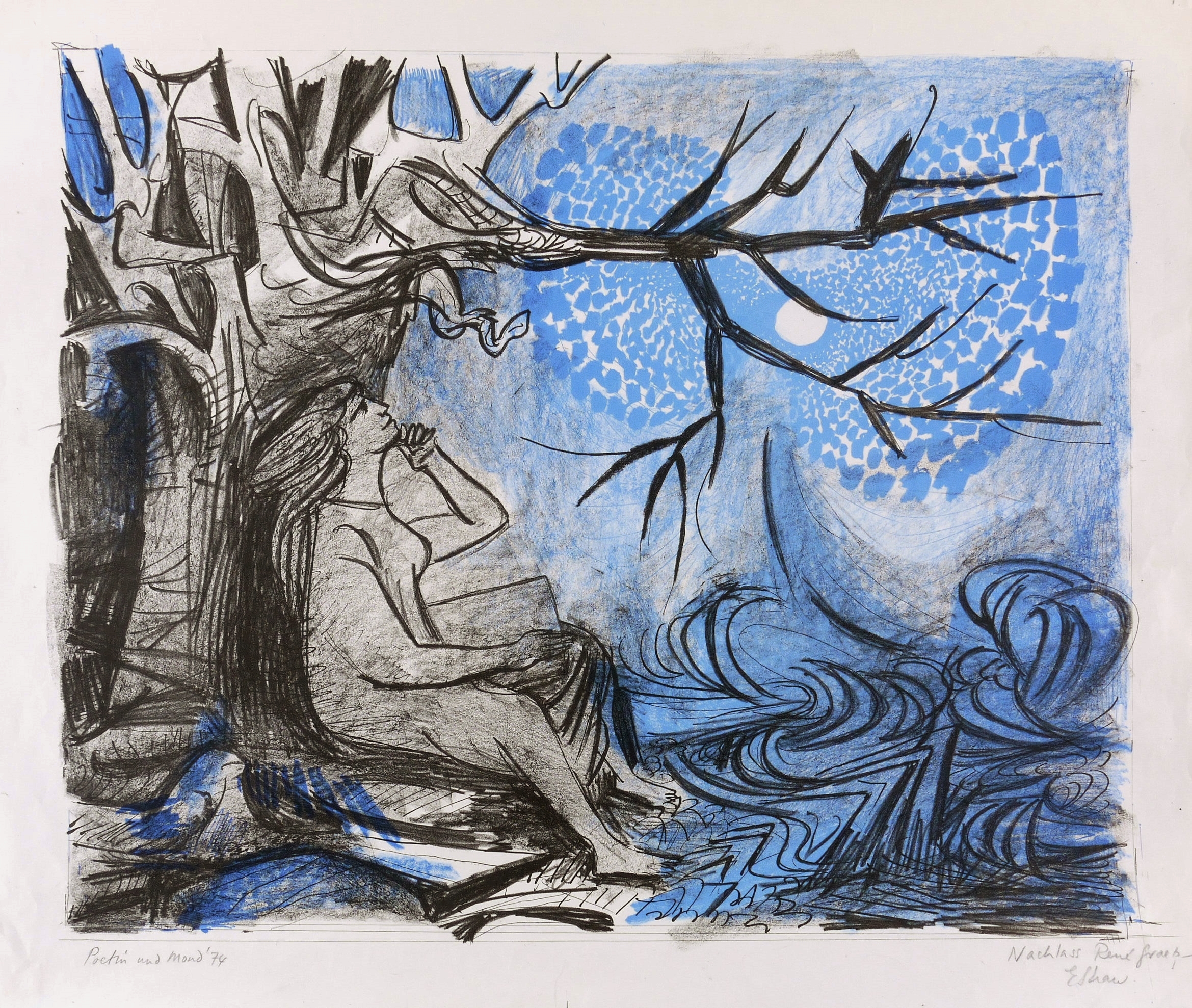 Nicht handsigniert. Rechts unten in Bleistift bezeichnet: ″Nachlass René Graetz - EShaw″. Links weiter: ″Poetin und Mond '74″. – Nachlass-Druck. – Im Rand außerhalb der Darstellung stärkere Lager- bzw. Griffspuren. Papier leicht gewellt. Mäßig guter Zustand.