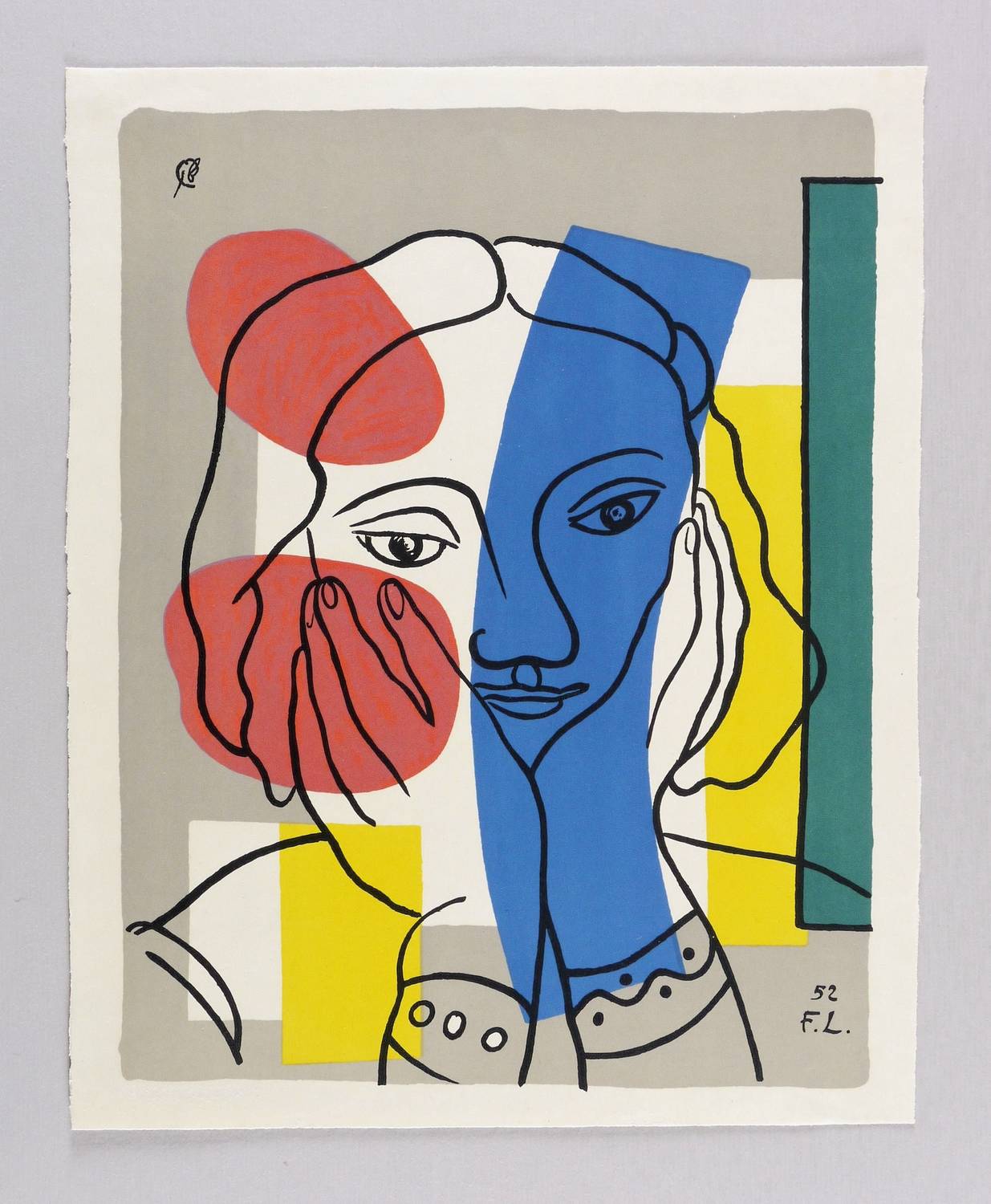 1952. Farbsiebdruck / Farbserigrafie, in 6 Farben, auf leichtem hellgelbem Werkdruckpapier. – Originale Künstlergrafik, von Fernand Léger. – 33,5 x 26,1 cm (Darstellung / Druckbild), 36 x 29 cm (Blatt).