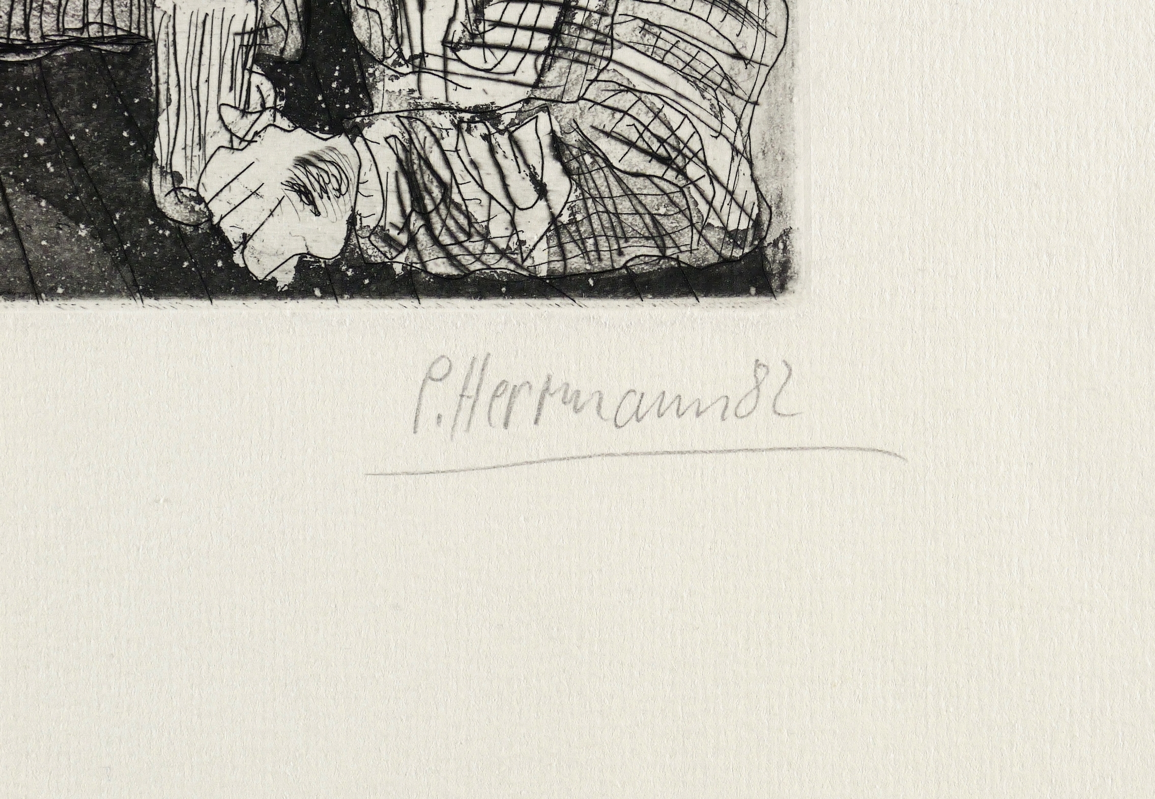 Rechts unten in Bleistift signiert und datiert: ″P. Herrmann 82″. Links Auflagenbezeichnung. Trockenstempel der Grafik-Edition. – Sehr gut erhalten.