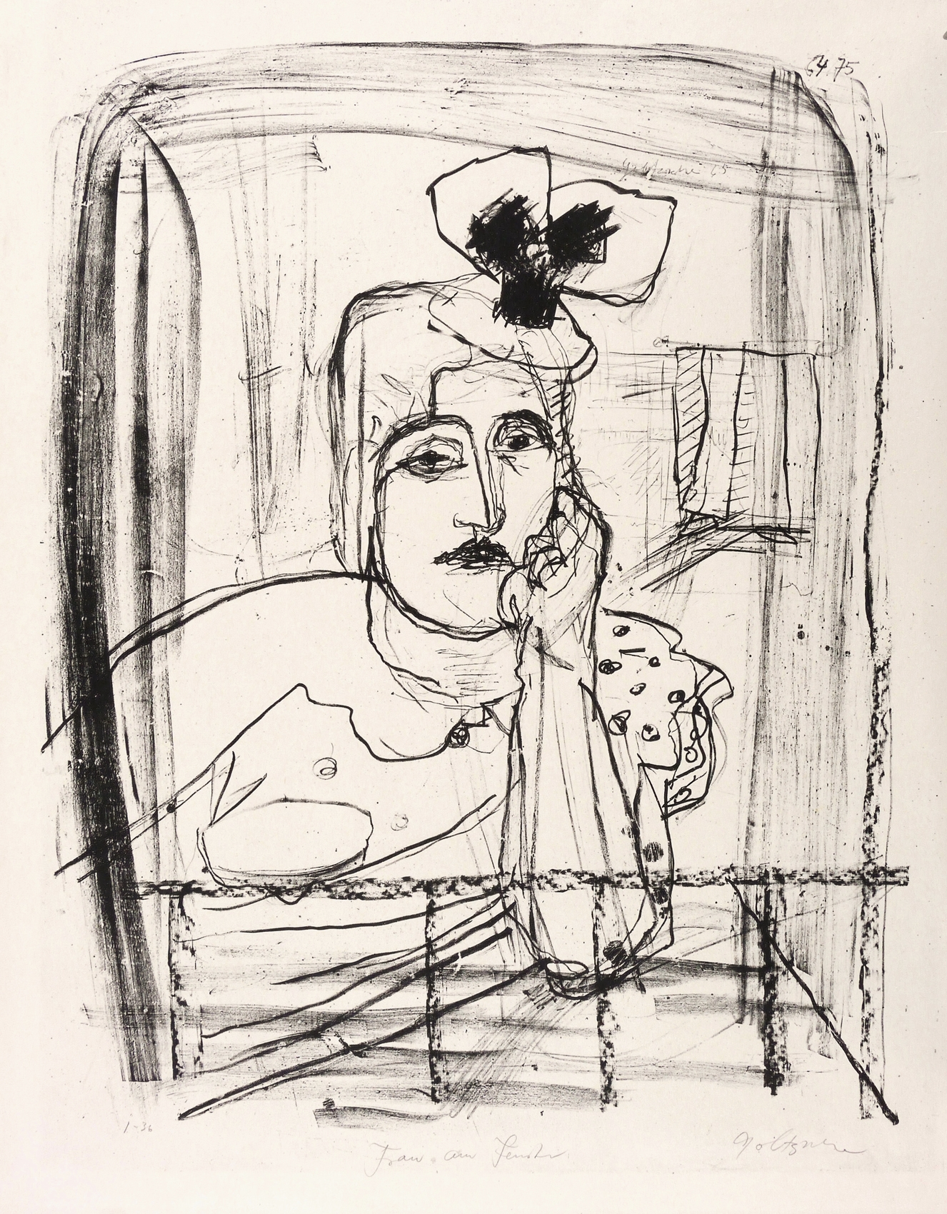 Scharnhorst 321 2 (von 2). – Rechts unten in Bleistift signiert: ″Goltzsche″. Links Auflagenbezeichnung: ″1/36″. Mittig Titel: ″Frau am Fenster″. In der Druckform rechts oben Signatur und Jahr: ″Goltzsche 65″. Dazu nochmals datiert: ″64/75″. – Sehr guter Zustand.