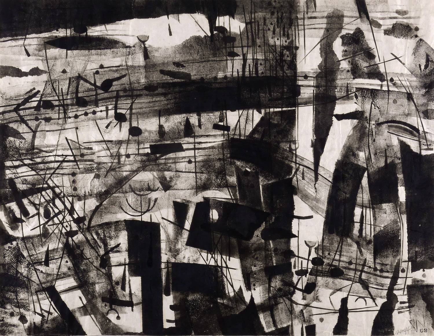1963. Monotypie, in Schwarz, auf leichtem weißlichem Velin. – Originale Künstlergrafik, von Willy Wolff. – Unikat. – 49,3 x 63,7 cm (Darstellung / Blatt).