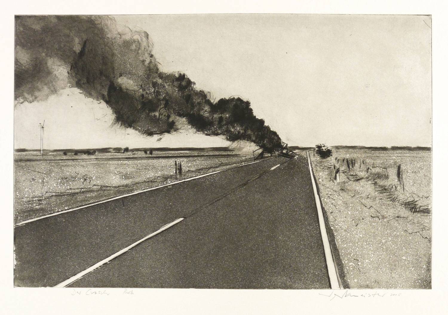 2005. Radierung / Aquatinta, Roulette, Strichätzung & Kaltnadel, in Schwarz, auf festem hellchamois Velin. – Von Wolfgang Werkmeister. – Probedrucke 6 Exemplare. – 27,8 x 42,4 cm (Darstellung / Platte), 47 x 61 cm (Blatt).