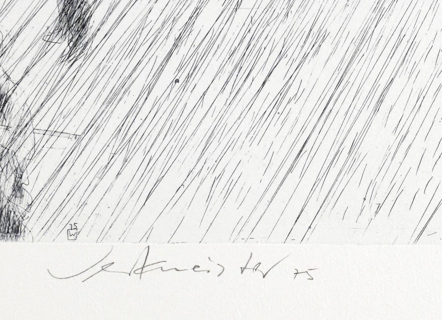 1975. Radierung / Strichätzung & Kaltnadel, in Schwarz, auf hellchamois Hahnemühle-Bütten. – Von Wolfgang Werkmeister. – Auflage Exemplar Nr. 44/70. – 29,6 x 41,5 cm (Darstellung / Platte), 48 x 60 cm (Blatt).