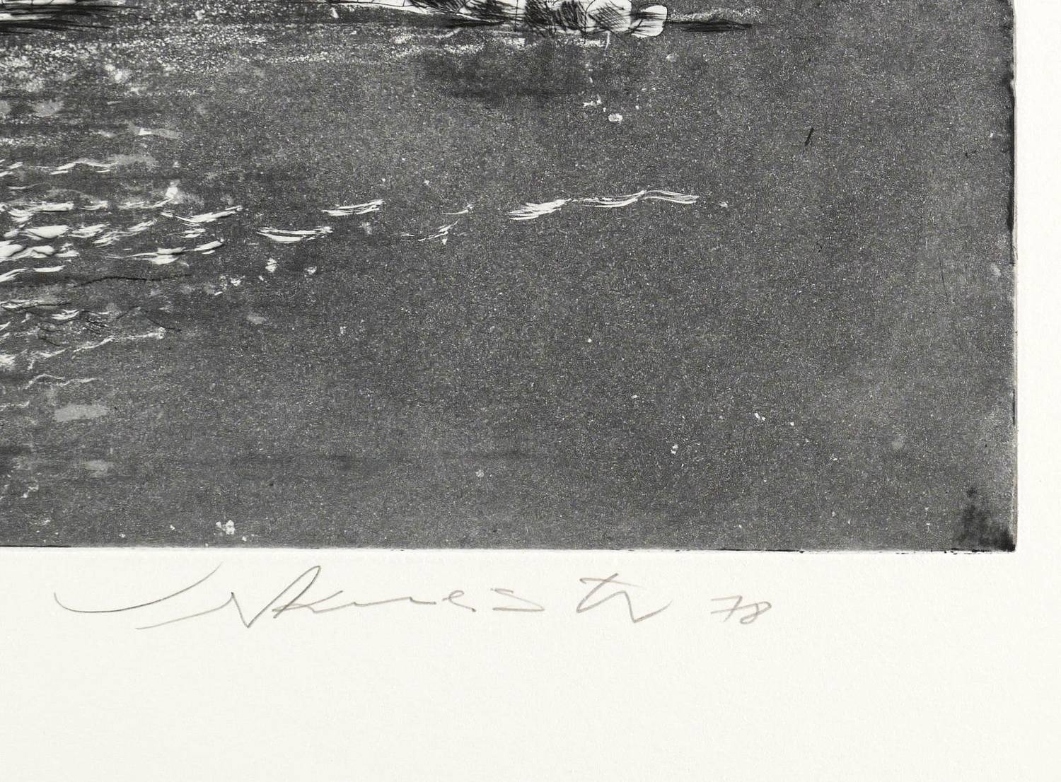1978. Radierung / Aquatinta, Strichätzung & Kaltnadel, partiell poliert, in Schwarz, auf festem hellem Velin. – Von Wolfgang Werkmeister. – Auflage Exemplar Nr. 120/120. – 33,7 x 47,5 cm (Darstellung / Platte), 52 x 66 cm (Blatt).