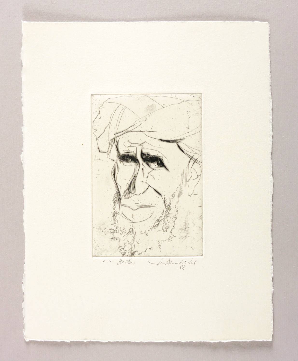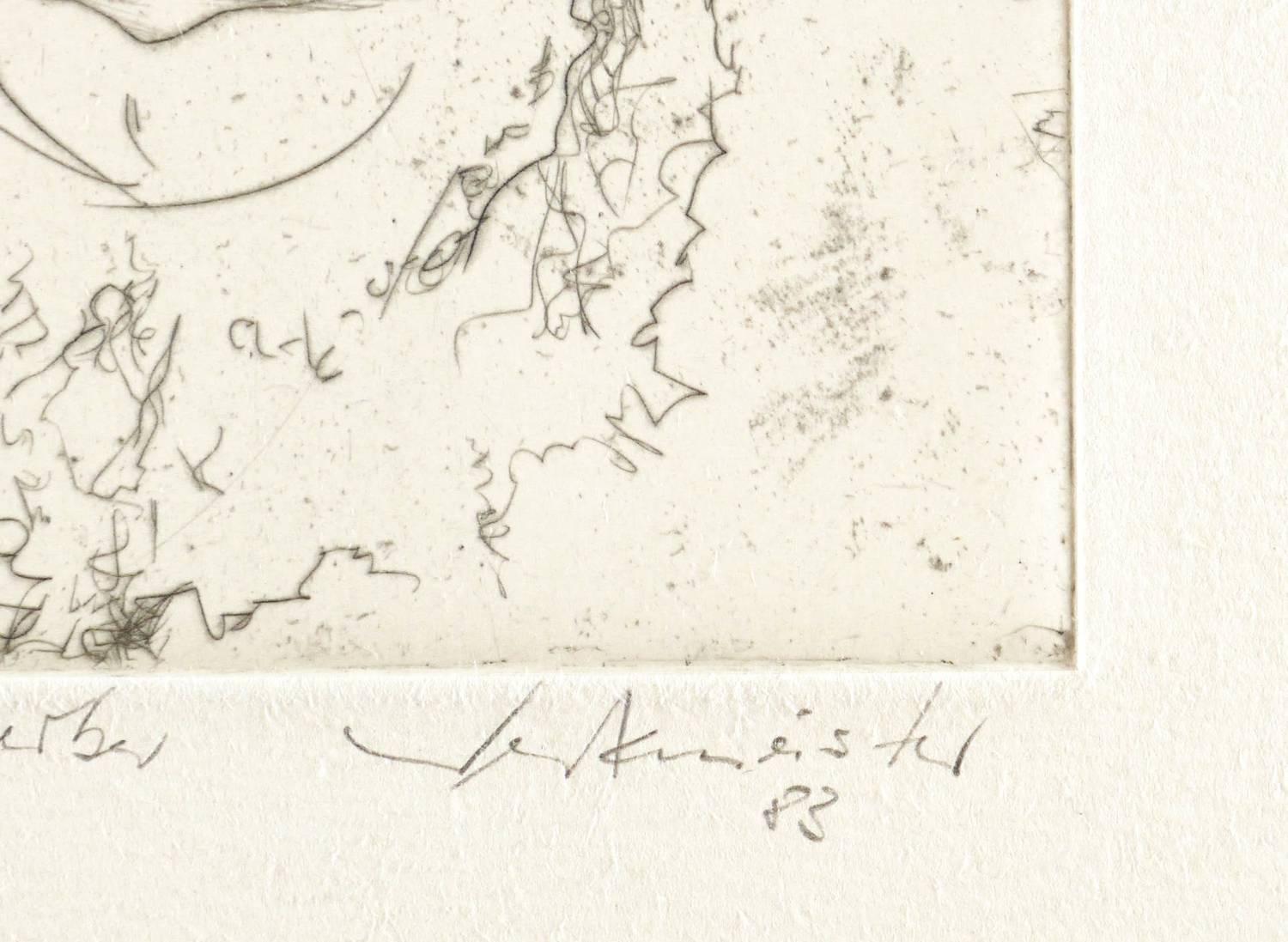 1983. Radierung / Kaltnadel, in Schwarz, auf schwerem Hahnemühle-Bütten. – Von Wolfgang Werkmeister. – Künstlerexemplar (e.a.). – 13,3 x 8,9 cm (Darstellung / Platte), 26 x 21 cm (Blatt).