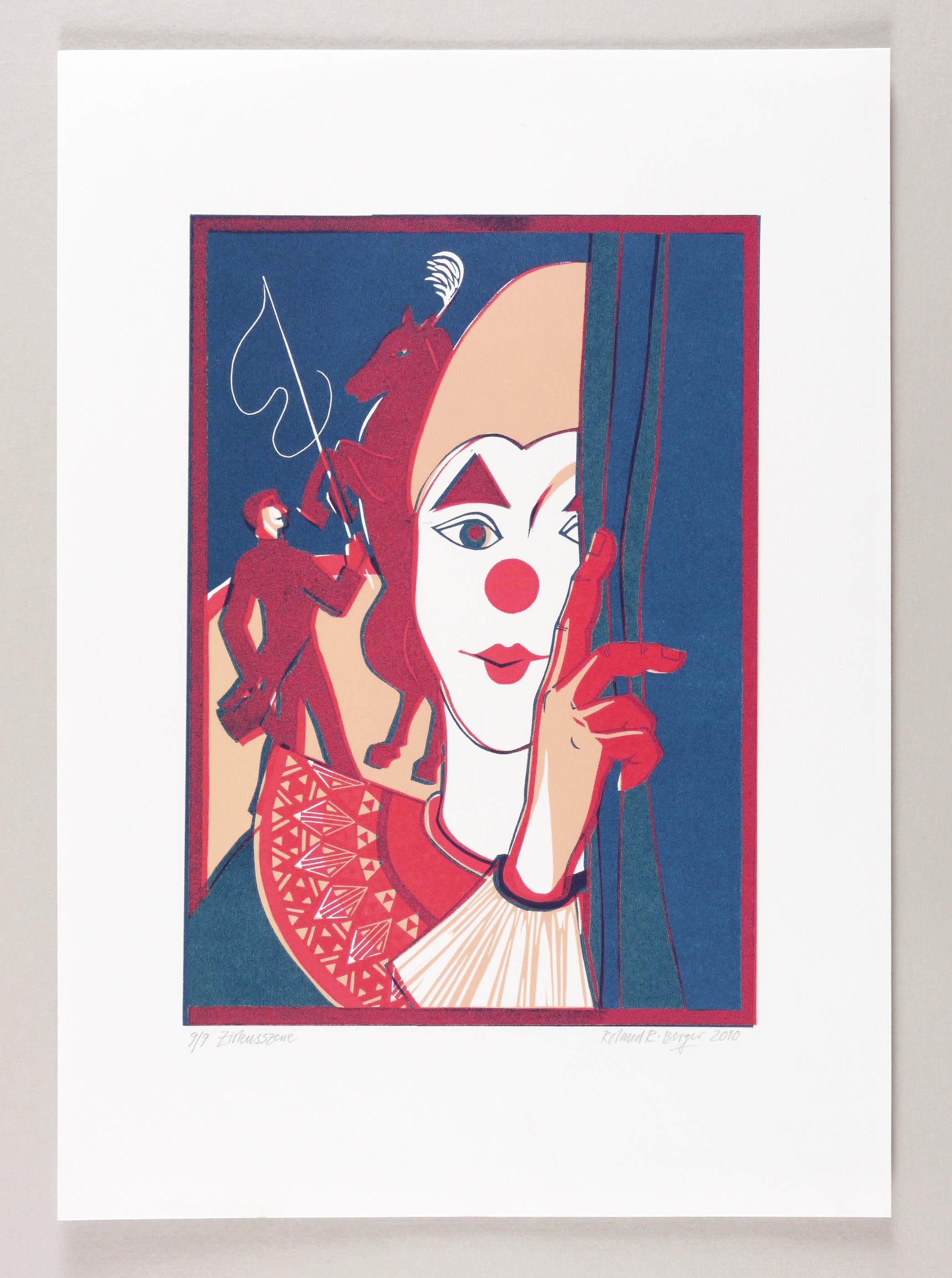 2010. Farblinolschnitt, in 3 Farben, auf weißem Velinkarton. – Originale Künstlergrafik, von Roland R. Berger. – Auflage Exemplar Nr. 9/9. – 29,8 x 21,0 cm (Darstellung), 43 x 31 cm (Blatt).