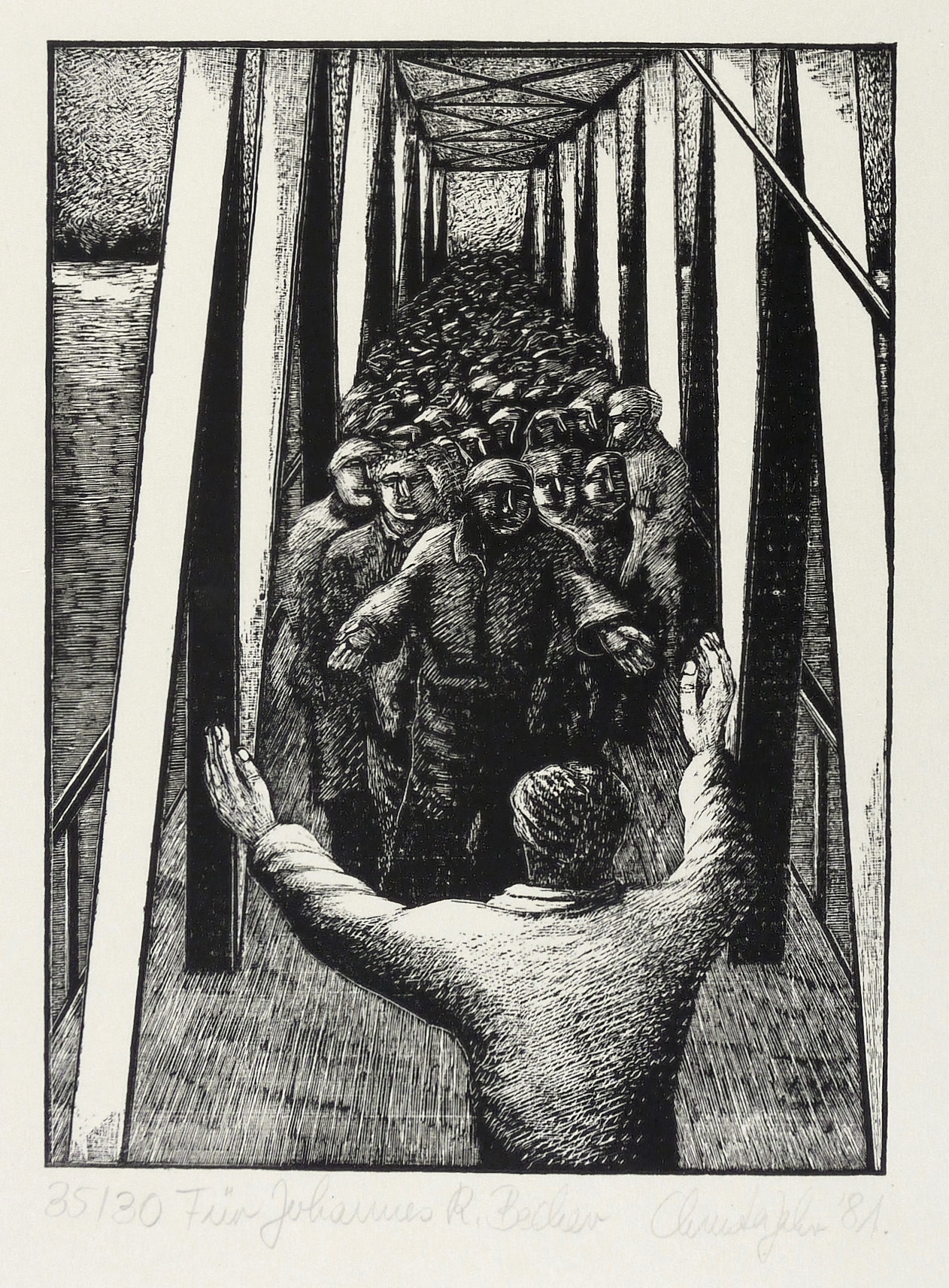 Rechts unten in Bleistift signiert und datiert: ″Christa Jahr 81″. Links Auflagenbezeichnung. Mittig Titel. – Verso in den oberen Blattecken Montagereste. Sehr guter Zustand.