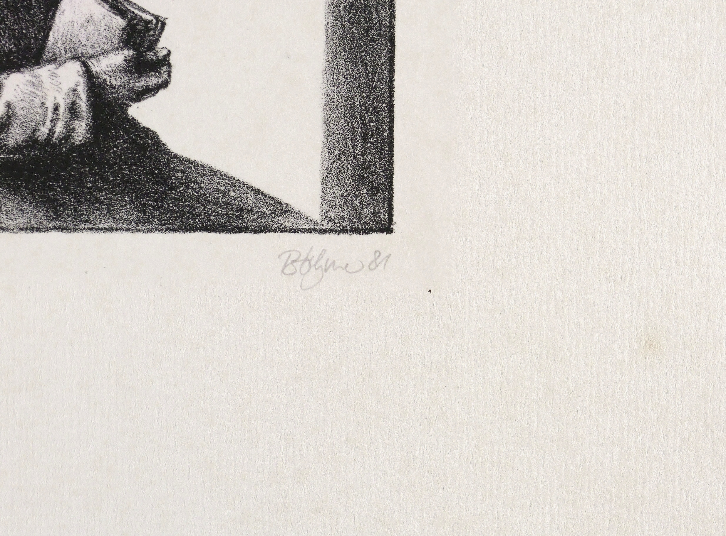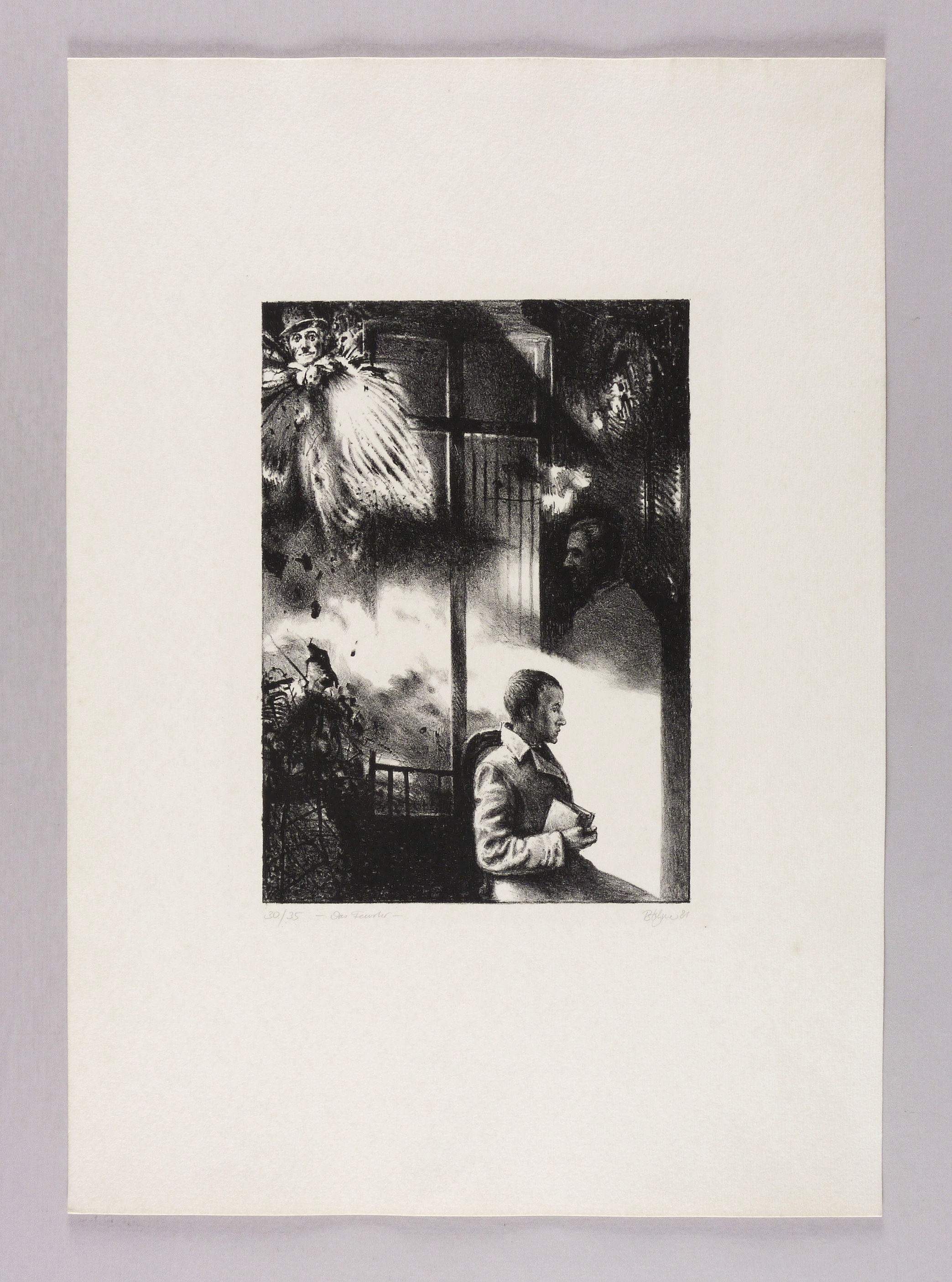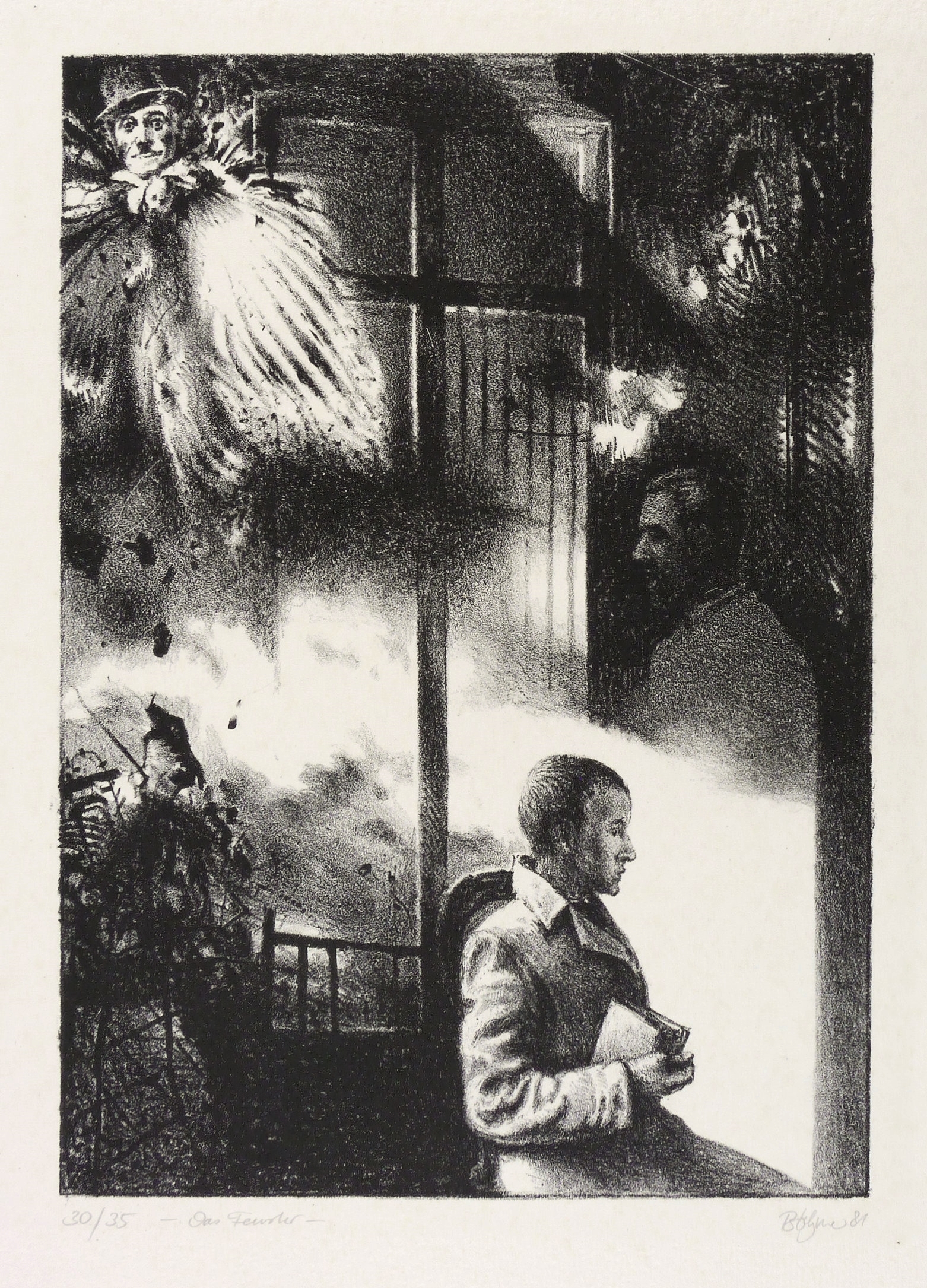 Rechts unten in Bleistift signiert und datiert: ″Böhme 81″. Links Auflagenbezeichnung: ″30/35″. Mittig Titel: ″Das Fenster″. – Papier kaum merklich fleckig. Insgesamt noch guter Zustand.