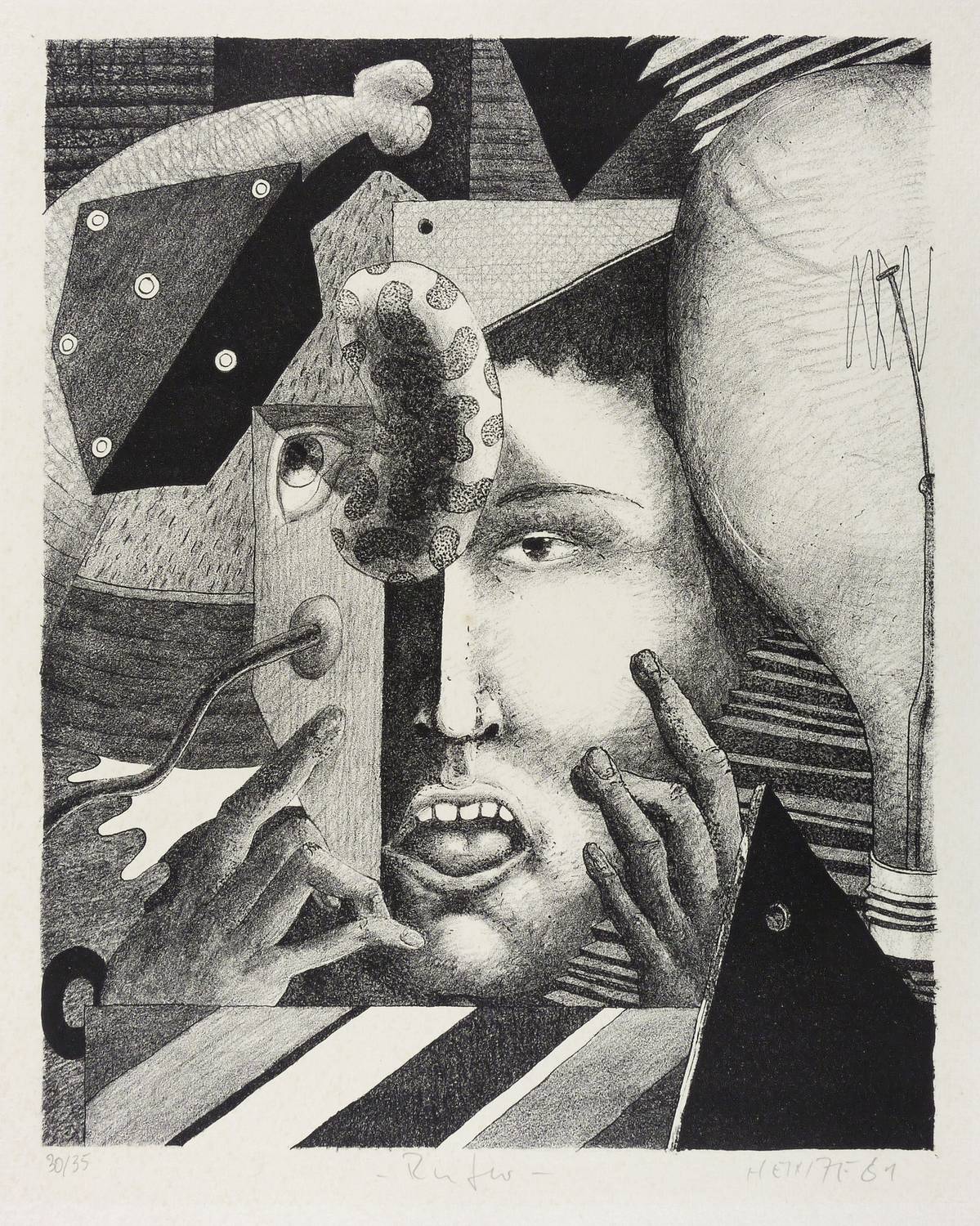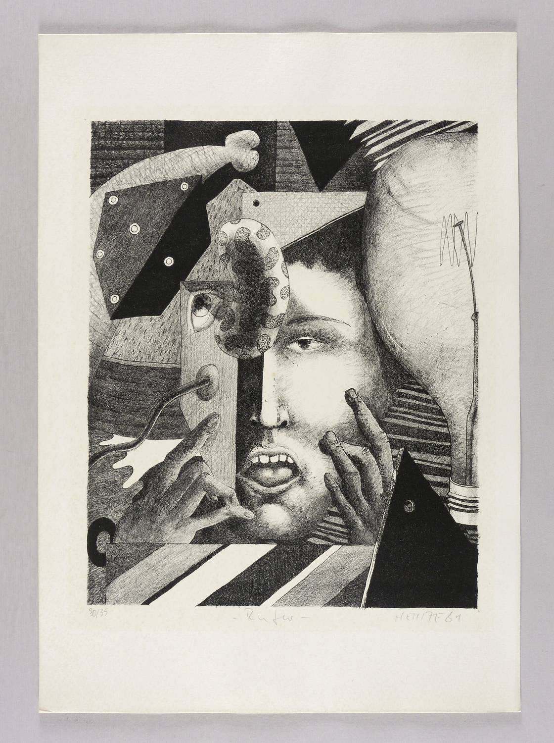 Rechts unten in Bleistift signiert und datiert: ″HEINZE 81″. Links Auflagenbezeichnung: ″30/35″. Mittig Titel: ″Rufer″. – Papier durchgehend unmerklich fleckig. Insgesamt guter Zustand.