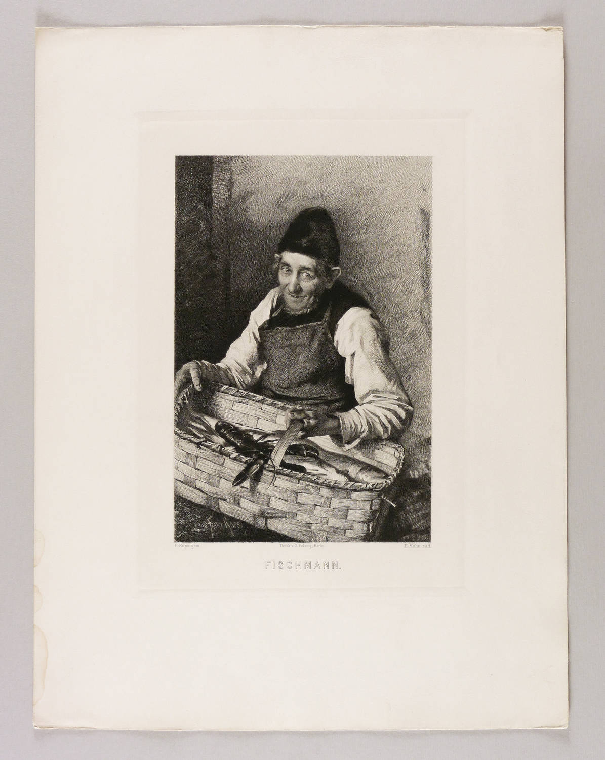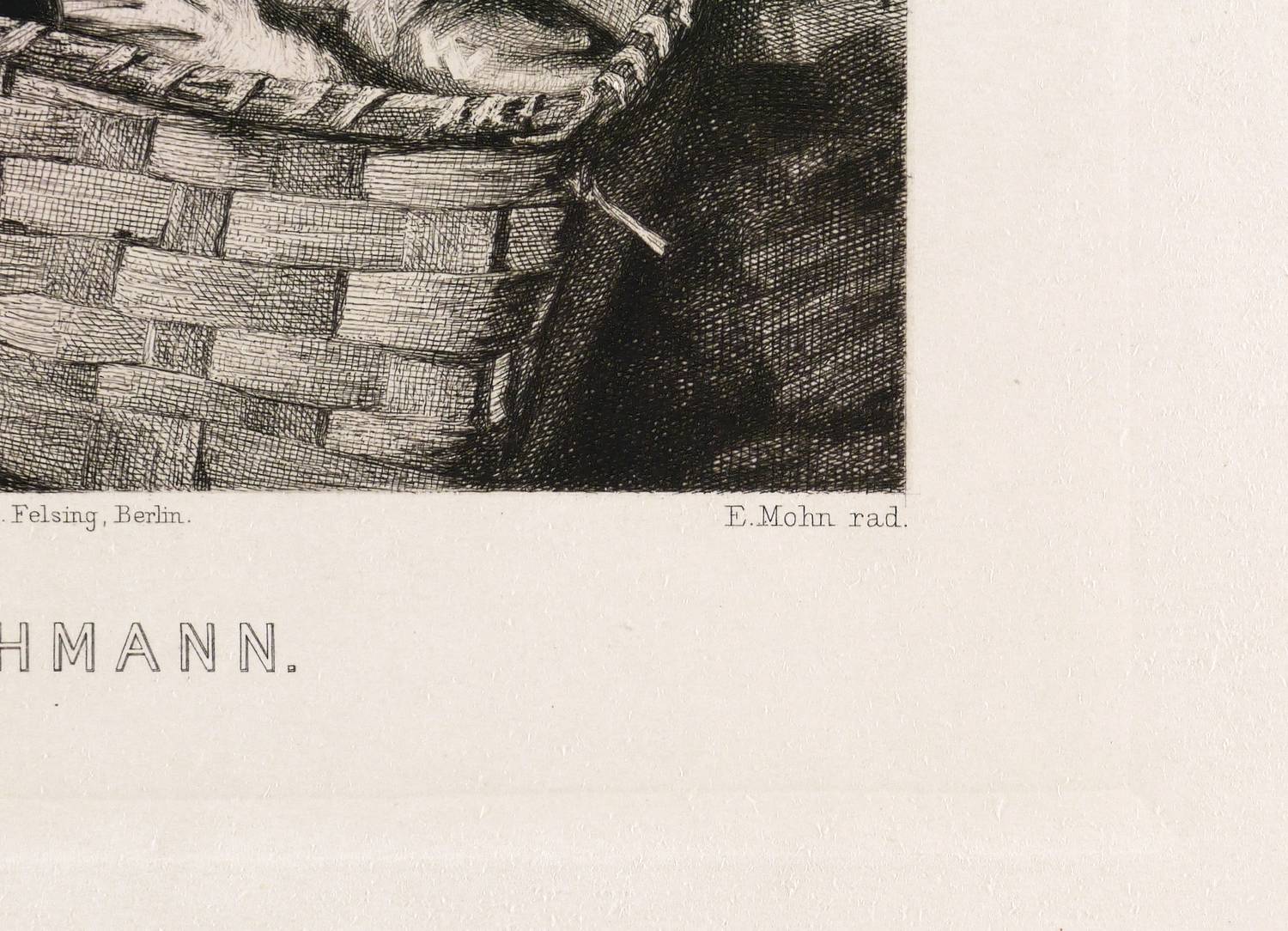 Aus: Vereinsgeschenk des Sächsischen Kunstvereins auf das Jahr ... (Dresden: Sächsischer Kunstverein 1898), Bd. 15. – In der Platte rechts unten gestochene Signatur: ″E. Mohn rad.″ Mittig Druckeradresse von O. Felsing, Berlin. Darunter Titel. In der Darstellung links unten Wiedergabe der Gemälde-Signatur: ″FRANZ KOPS″. – Originalrandiges unbeschnittenes Exemplar. Blattkanten umlaufend etwas beansprucht, im linken Rand unten Wasserflecken. Papier geringfügig angestaubt. Insgesamt mäßig guter Zustand.