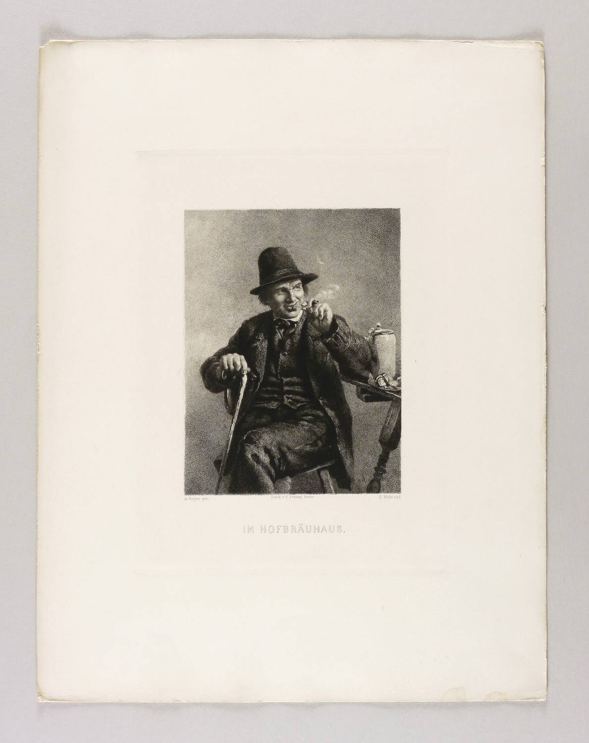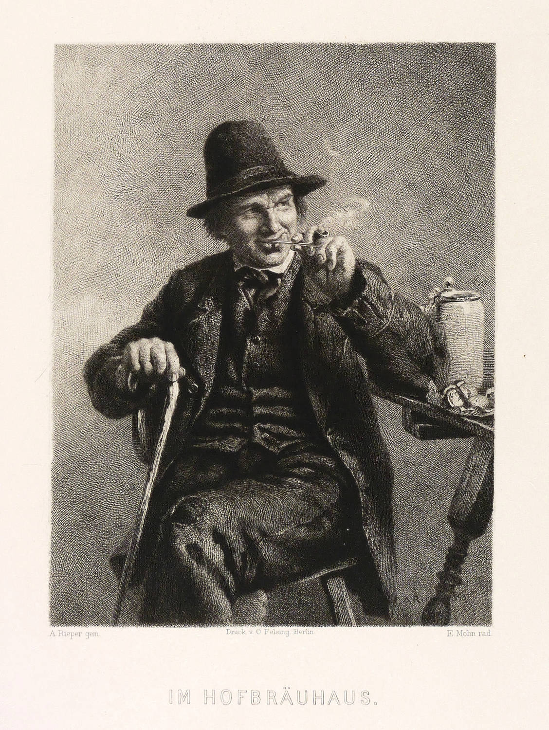 Aus: Vereinsgeschenk des Sächsischen Kunstvereins auf das Jahr .. (Dresden: Sächsischer Kunstverein 1897), Bd. 14. – In der Platte rechts unten gestochene Signatur: ″E. Mohn rad.″ Mittig Druckeradresse von O. Felsing, Berlin. Darunter Titel. In der Darstellung rechts unten Wiedergabe der Gemälde-Signatur: ″A Rieper 1895″. – Originalrandiges unbeschnittenes Exemplar. Blattkanten umlaufend etwas beansprucht und bestoßen, im unteren Rand rechts Wasserflecken. Papier geringfügig angestaubt. Insgesamt mäßig guter Zustand.