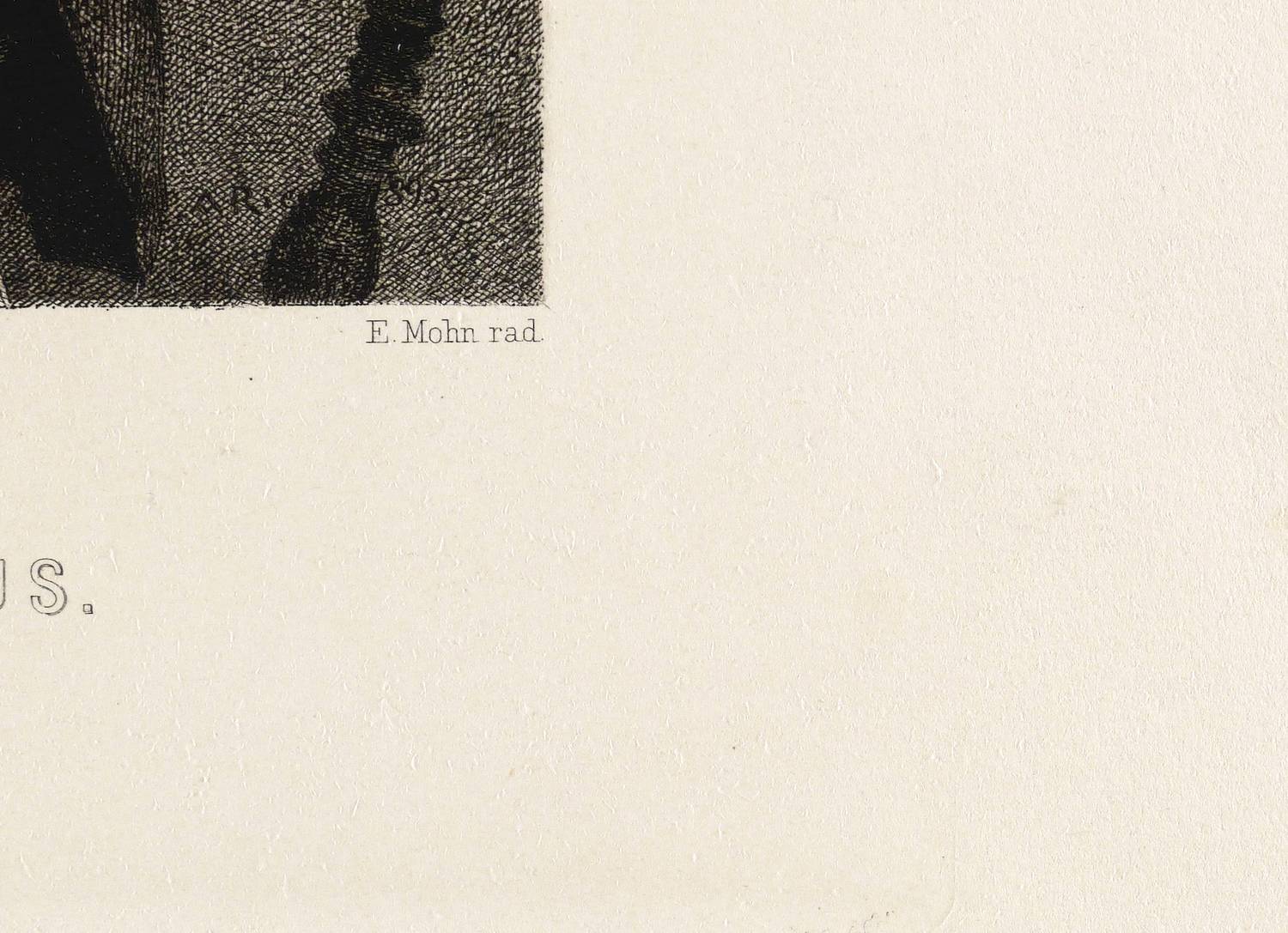 Ernst Mohn (1835 Dresden-Pieschen - 1912 Leipzig). Eigentlich Ernst Fürchtegott Mohn. Deutscher Miniaturmaler, reproduzierender Kupferstecher und Radierer. Schüler von Hübner und L. Gruner. 1866-74 Studienreisen nach Italien und England. 1884-1905 Lehrer für Kupferstich an der Kunstakademie und Kunstgewerbeschule in Leipzig.
