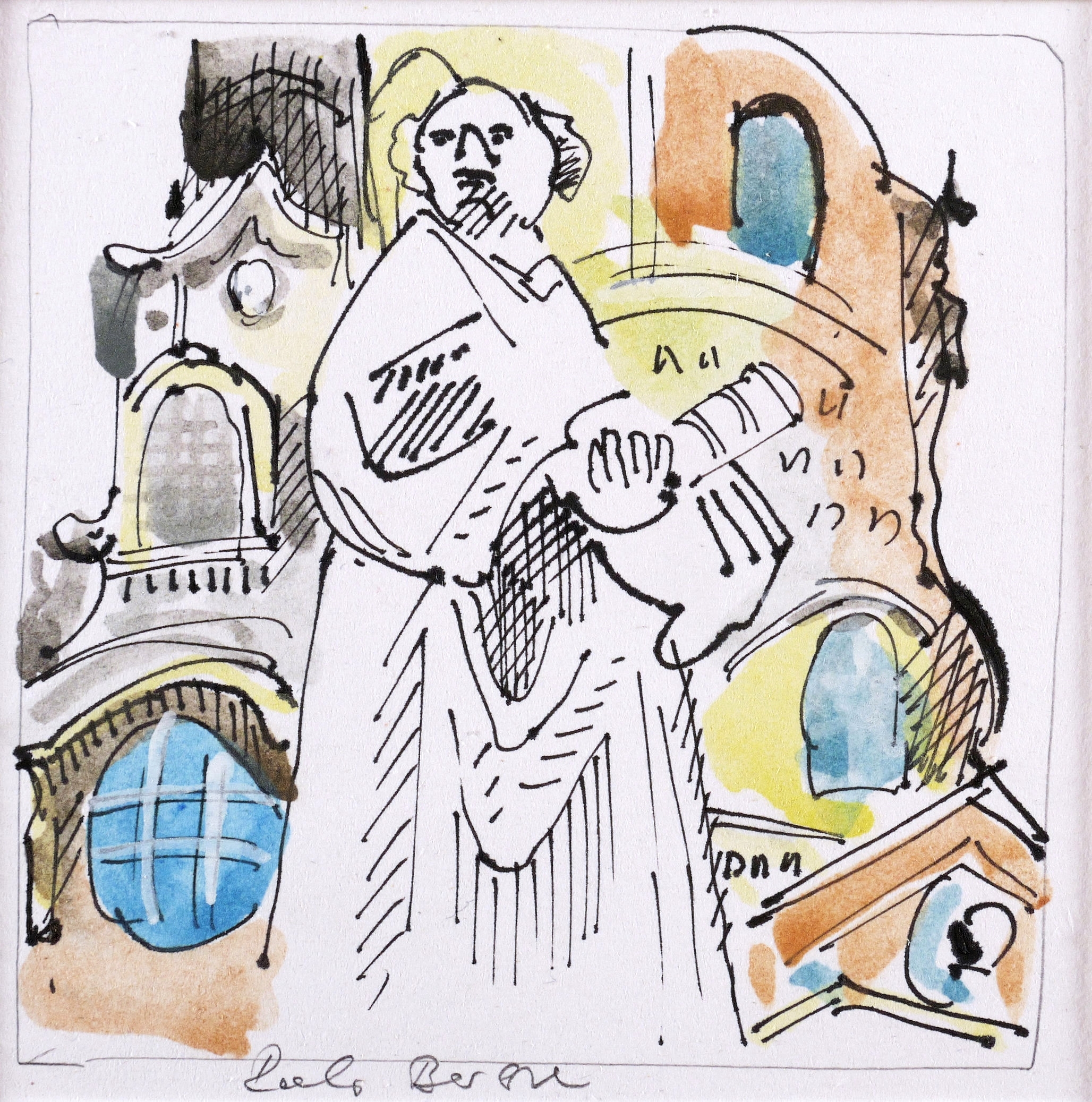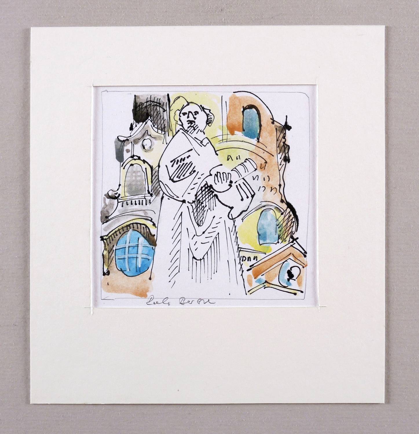 2021. Zeichnung / Tusche & Aquarell, auf weißem Kartonkarton. – Originale Künstlergrafik, von Ralf Bergner. – Unikat. – 9,3 x 9,3 cm (Darstellung), 13 x 13 cm (Blatt), 17 x 16 cm (Passepartout).