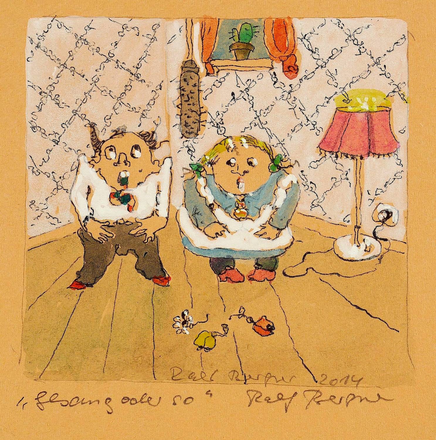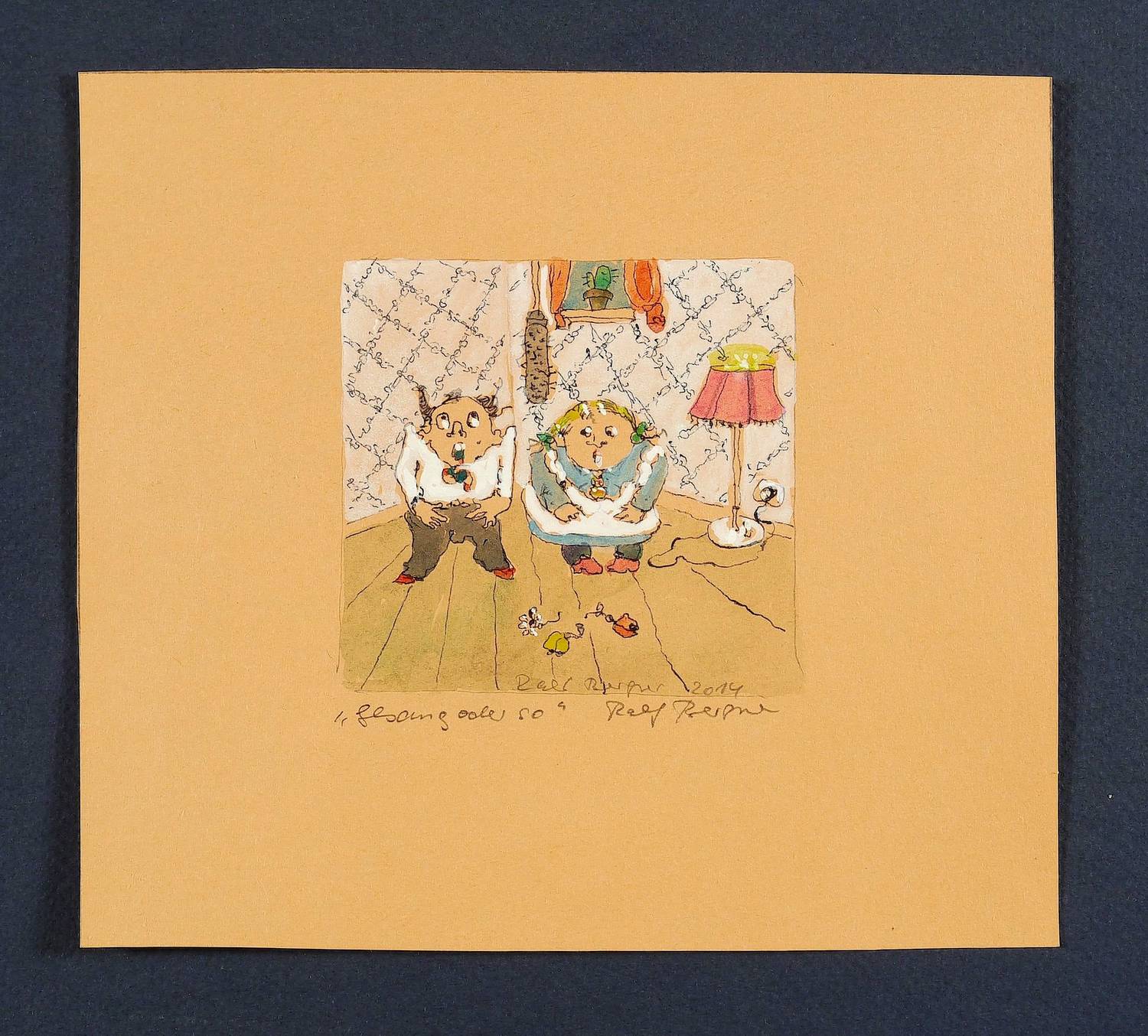 2014. Zeichnung / Tusche, Aquarell & Gouache, auf getöntem Papier. – Originale Künstlergrafik, von Ralf Bergner. – Unikat. – 7,2 x 7,5 cm (Darstellung), 14,5 x 16 cm (Blatt).