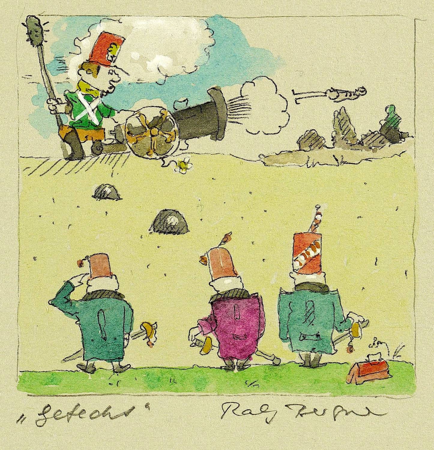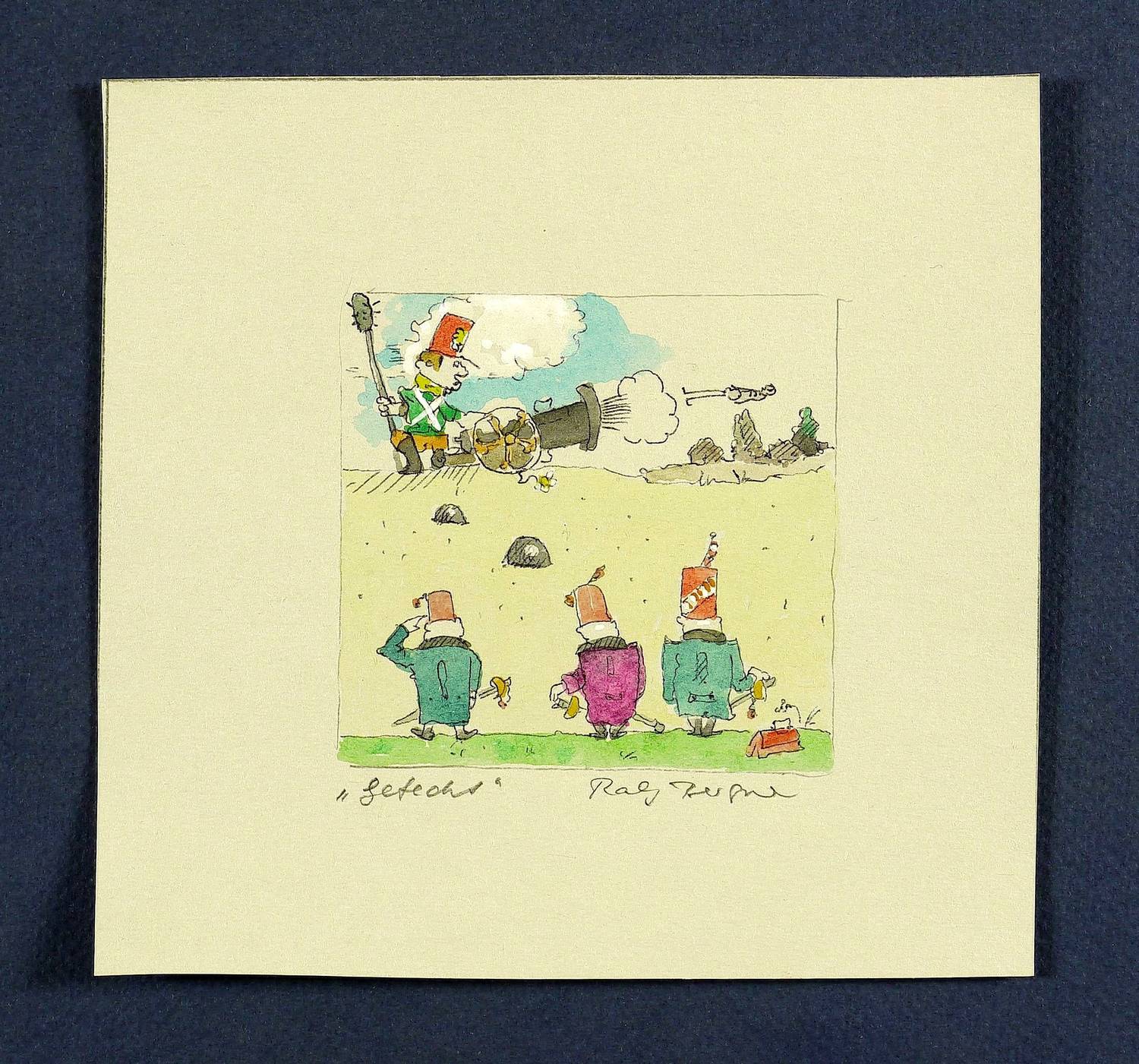 2014. Zeichnung / Kugelschreiber & Aquarell, auf getöntem Papier. – Originale Künstlergrafik, von Ralf Bergner. – Unikat. – 7,2 x 7,5 cm (Darstellung), 13,4 x 14,2 cm (Blatt).