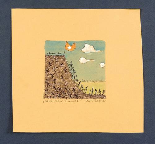 2014. Zeichnung / Aquarell & Gouache, über Kugelschreiber. – Originale Künstlergrafik, von Ralf Bergner. – Unikat. – 7,2 x 7,5 cm (Darstellung), 15,4 x 16,2 cm (Blatt).
