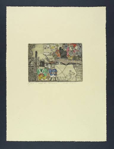 2005. Radierung / Strichätzung, aquarelliert. – Originale Künstlergrafik, von Ralf Bergner. – Auflage Exemplar Nr. 5/100. – 14,7 x 19,4 cm (Darstellung / Platte), 48,0 x 35,5 cm (Blatt).