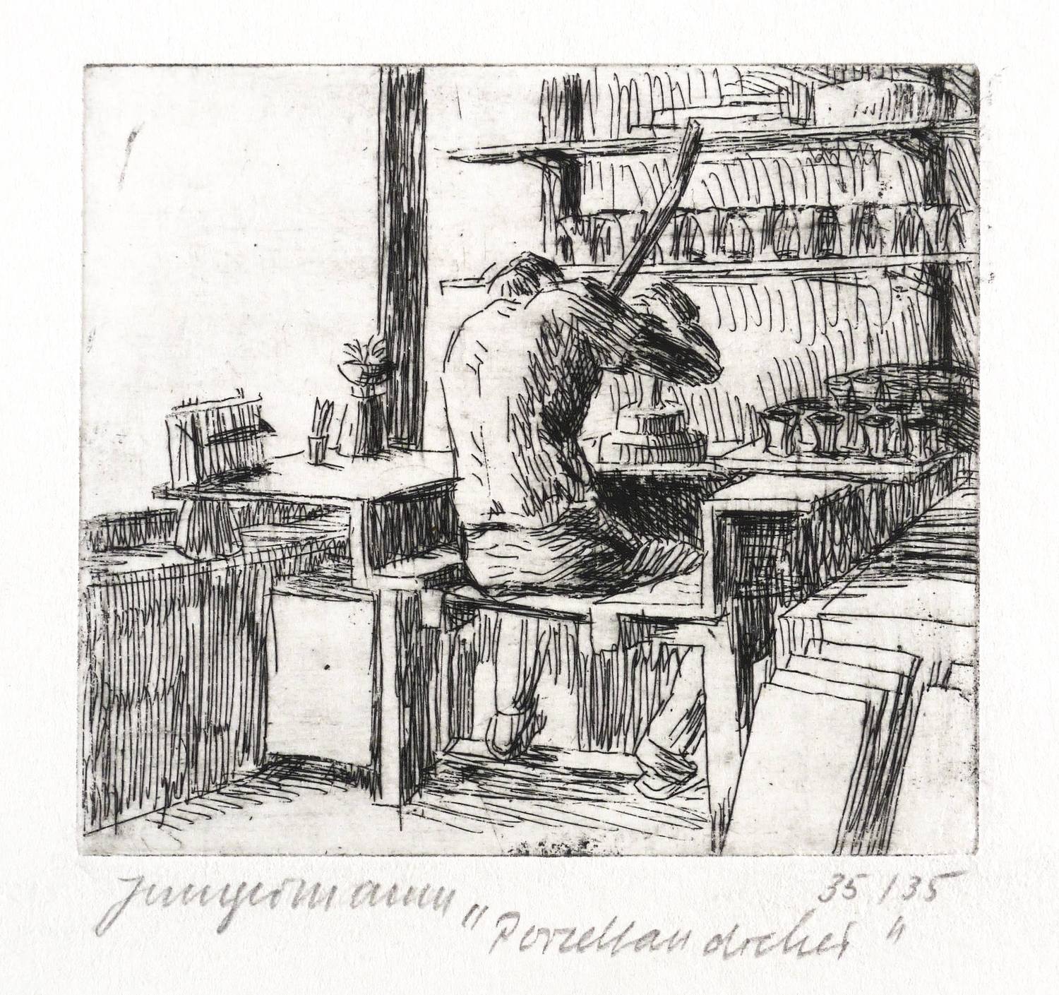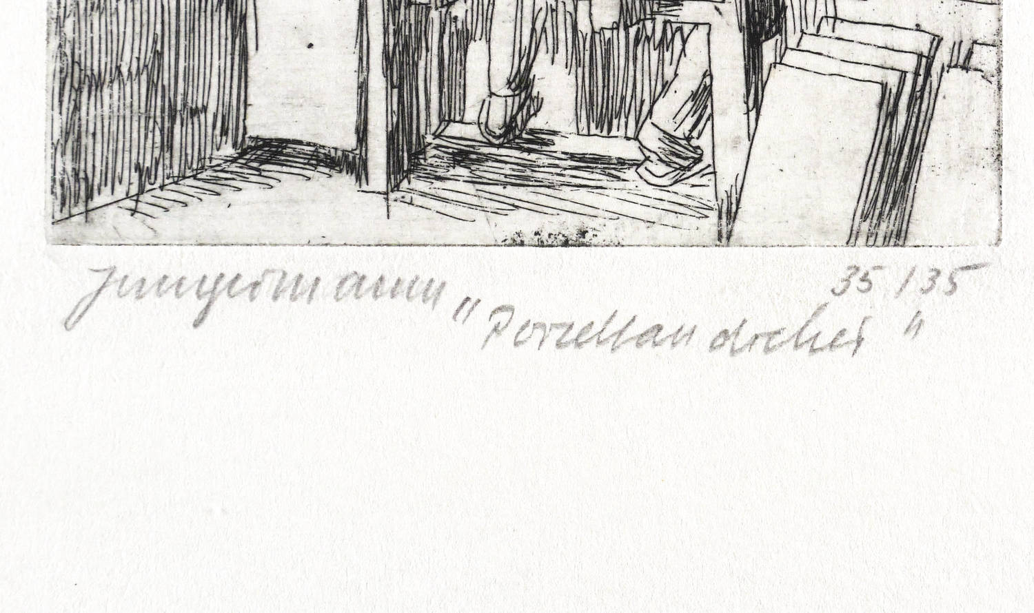 1982. Radierung / Strichätzung, in Schwarz, auf hellchamois Velin. – Originale Künstlergrafik, von Ulrich Jungermann. – Auflage Exemplar Nr. 35/35. – 7,6 x 8,6 cm (Darstellung / Platte), 15 x 16 cm (Blatt).