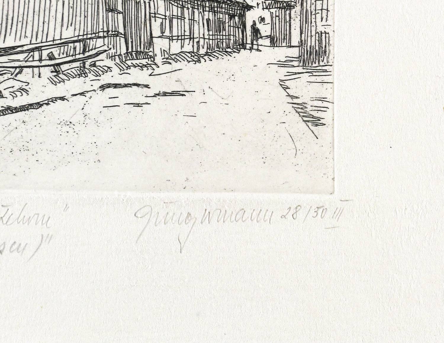 1983. Radierung / Kaltnadel, in Schwarz, auf hellchamois Hahnemühle. – Originale Künstlergrafik, von Ulrich Jungermann. – Auflage Exemplar Nr. 28/30. – 8,4 x 9,3 cm (Darstellung / Platte), 15 x 19 cm (Blatt).