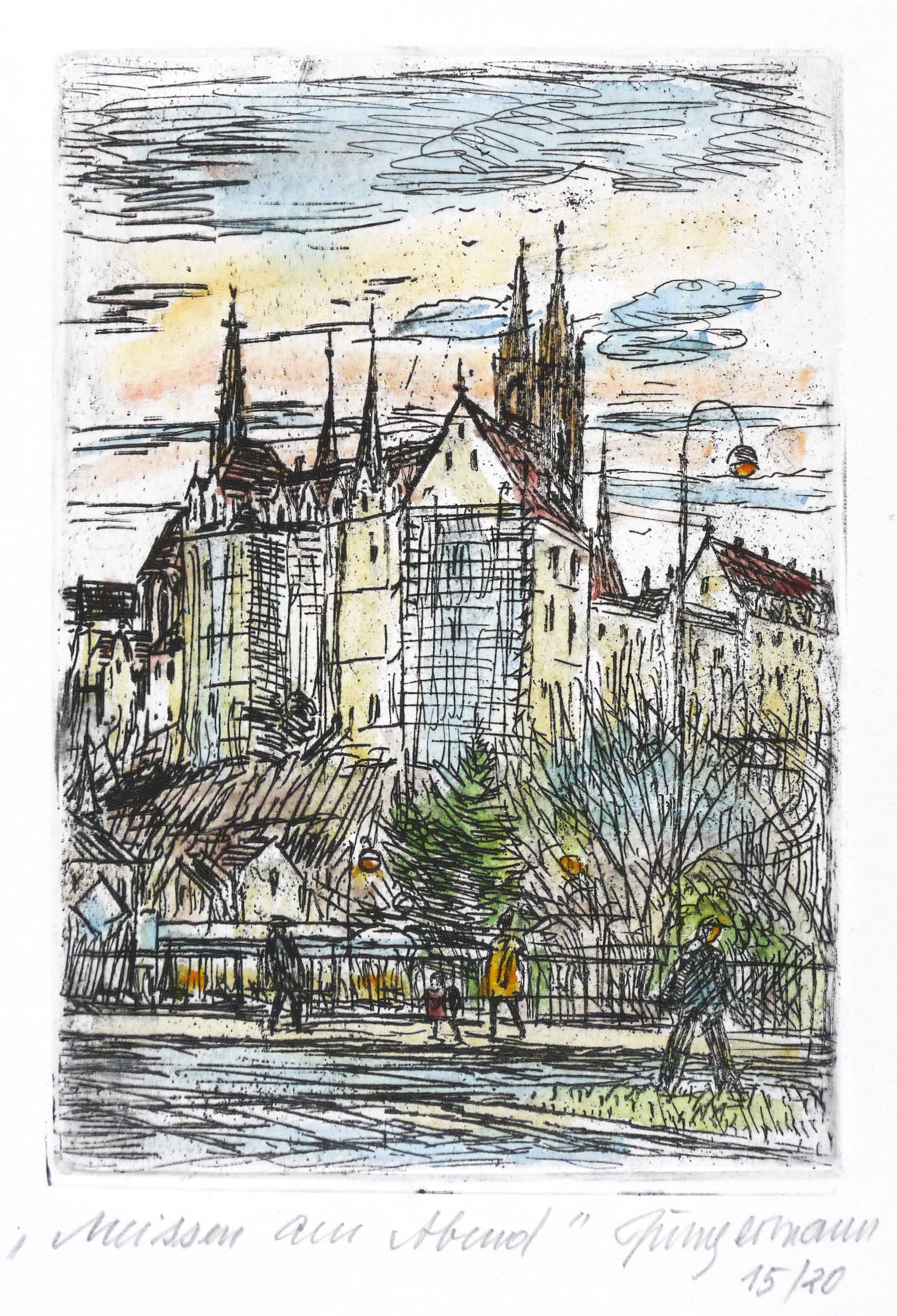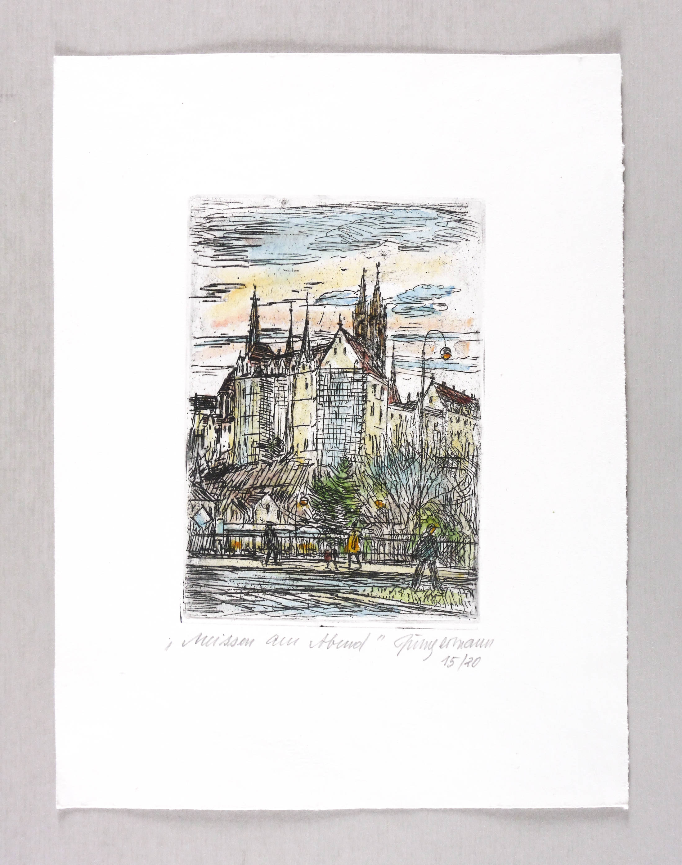 Rechts unten in Bleistift signiert: ″Jungermann″. Dazu Auflagenbezeichnung: ″15/20″. Links betitelt: ″Meissen am Abend″. – Sehr guter Zustand.