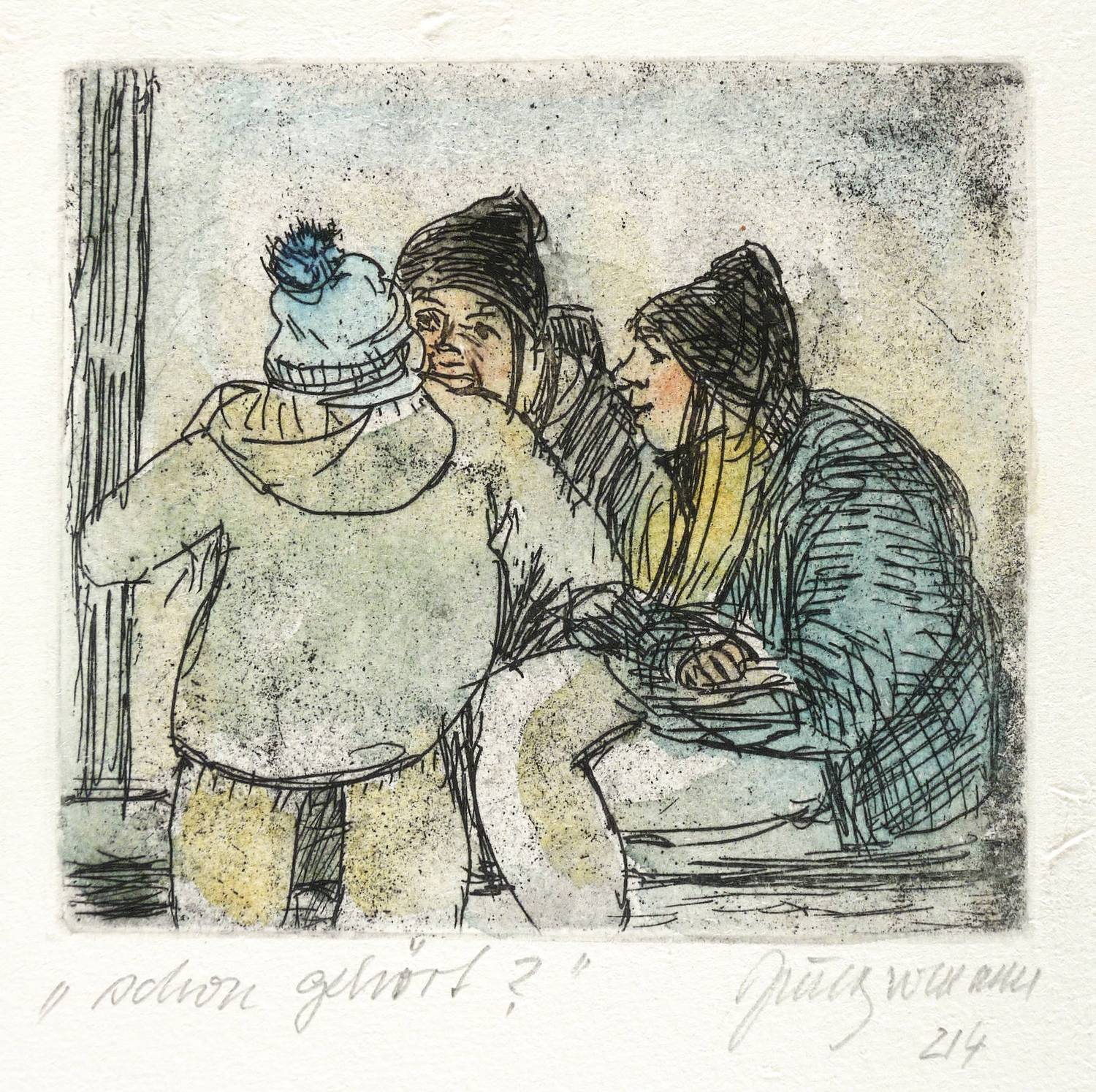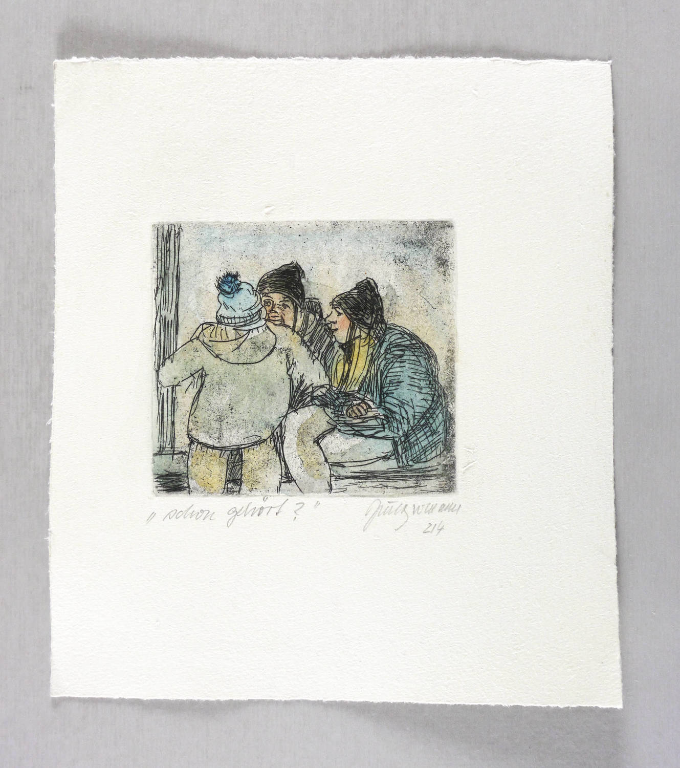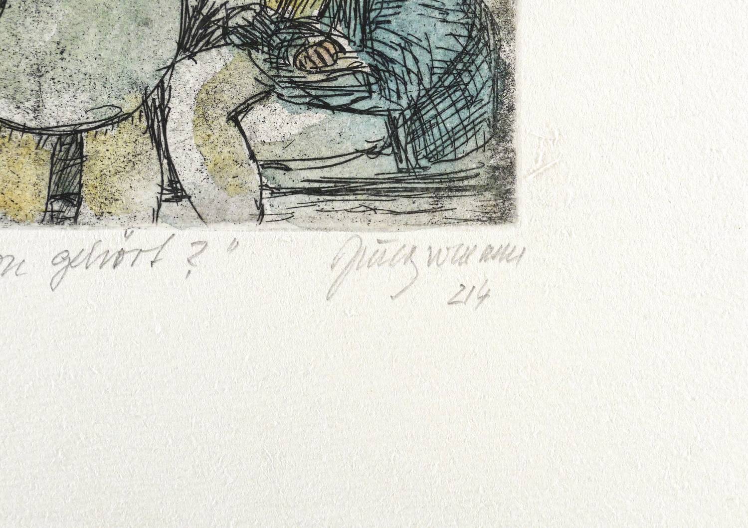 2020. Radierung / Strichätzung, in Schwarz, aquarelliert, auf hellchamois Velin. – Originale Künstlergrafik, von Ulrich Jungermann. – Auflage Exemplar Nr. 2/4. – 10,3 x 11,3 cm (Darstellung / Platte), 24 x 21 cm (Blatt).