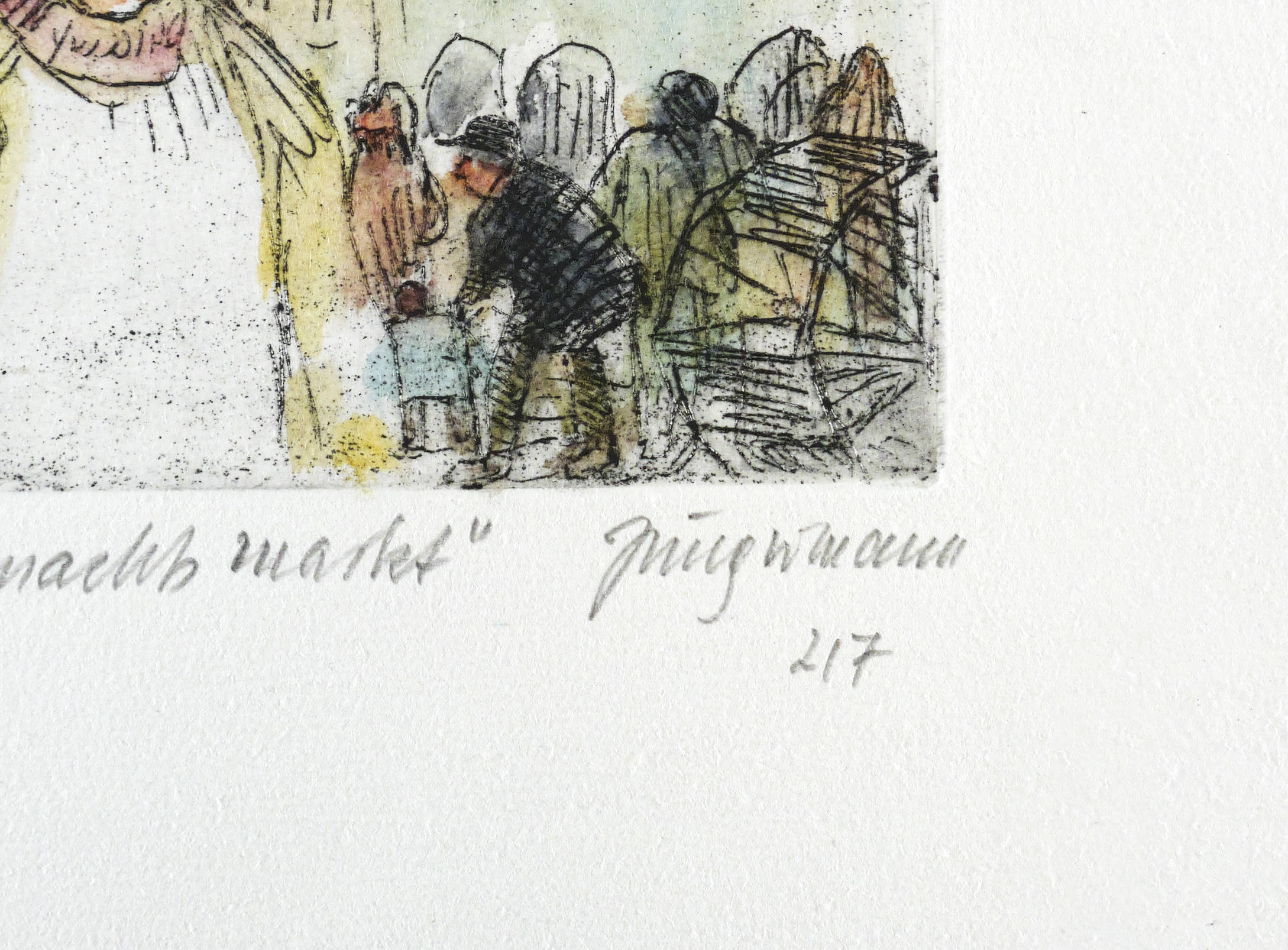 2018. Radierung / Strichätzung, in Schwarz, aquarelliert, auf hellchamois Velin. – Originale Künstlergrafik, von Ulrich Jungermann. – Auflage Exemplar Nr. 2/7. – 16,8 x 13,9 cm (Darstellung / Platte), 27 x 25 cm (Blatt).