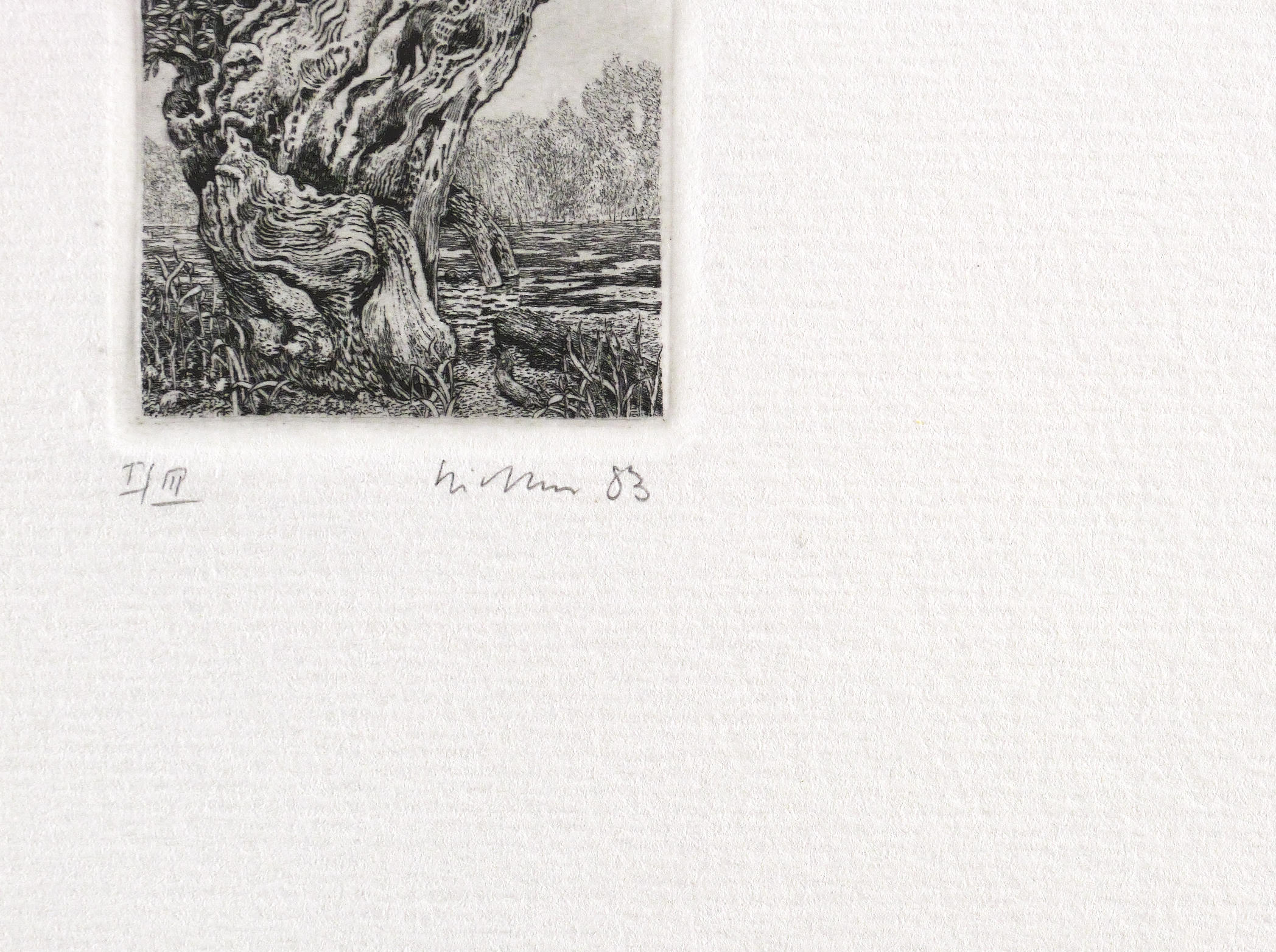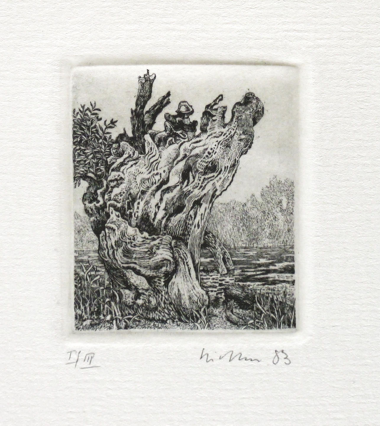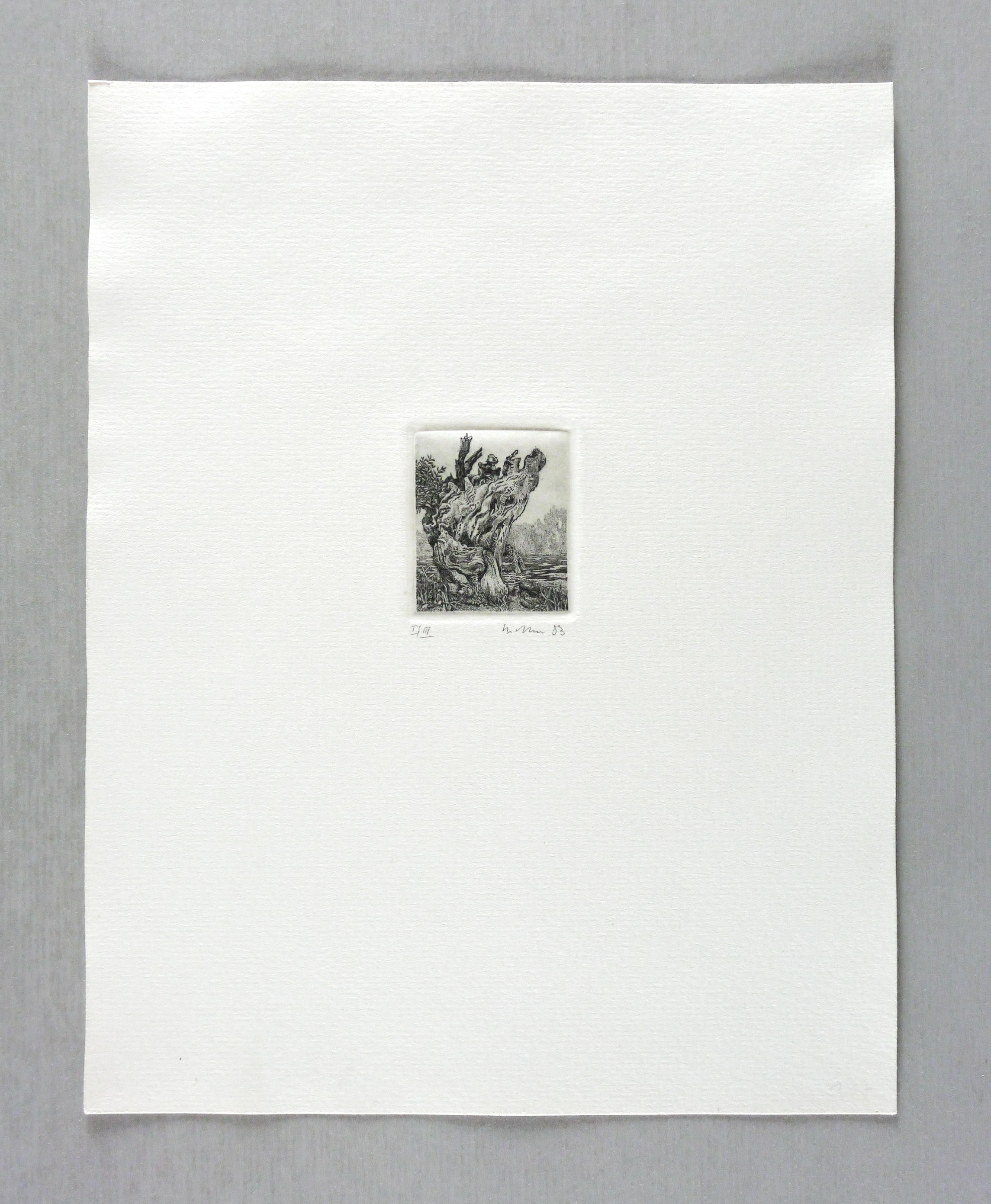 1983. Radierung / Strichätzung, in Schwarz, auf hellchamois Weißenborn. – Originale Künstlergrafik, von Gerenot Richter. – Auflage Exemplar Nr. I/III. – 5,0 x 4,0 cm (Darstellung / Platte), 26 x 20 cm (Blatt).